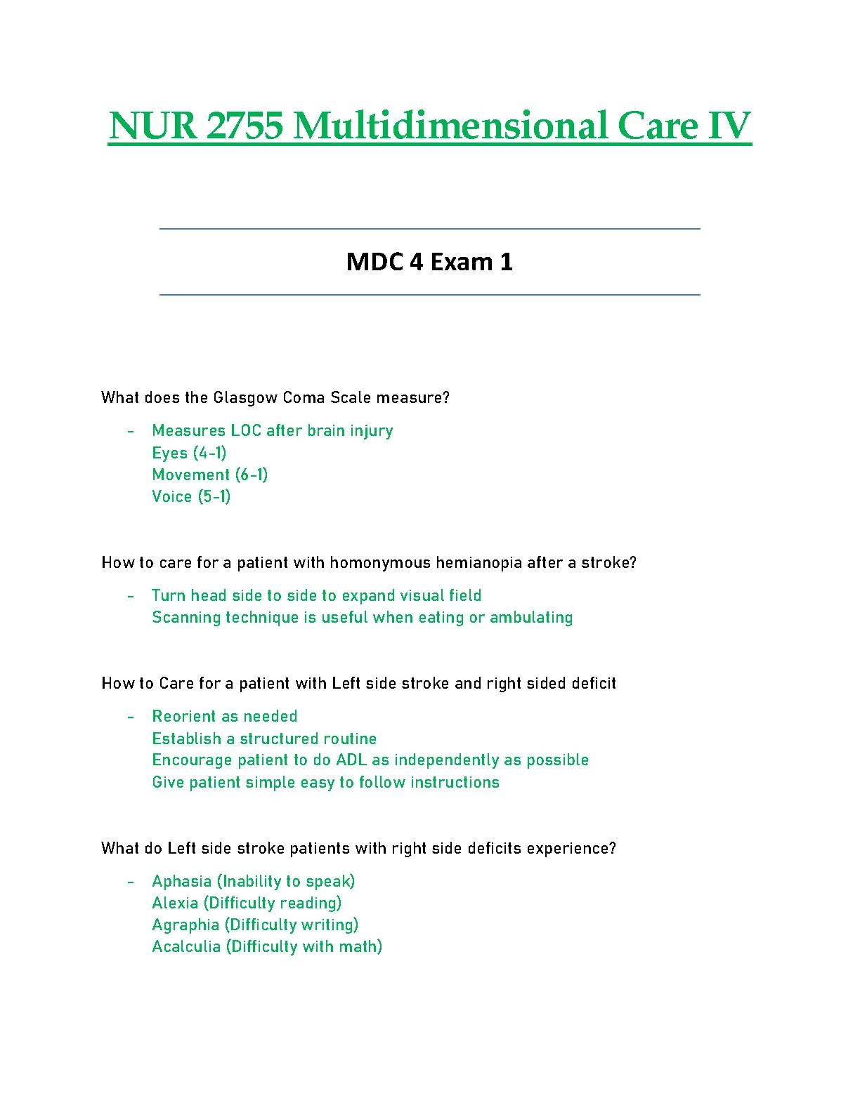 NUR 2755 Multidimensional Care IV MDC4 Exam 1 GRADE A+