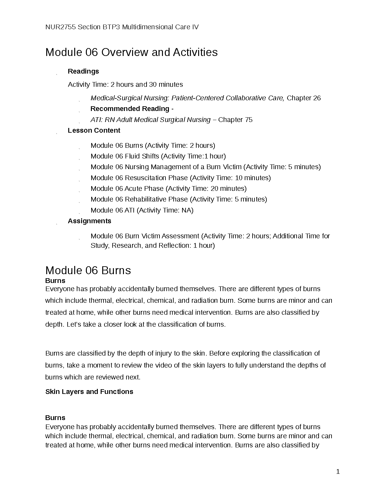 NUR2755 Section BTP3 Multidimensional Care IV Module 06 Overview and Activities GRADED A+