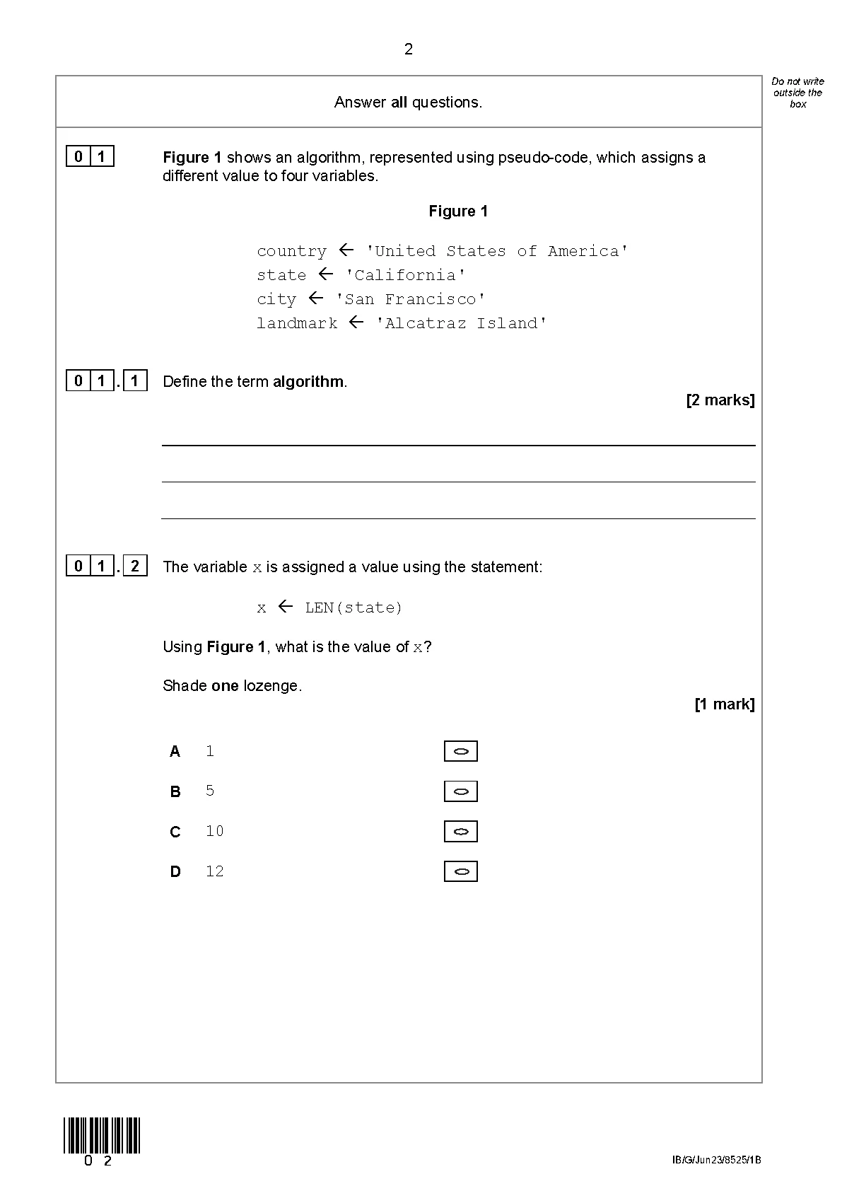 AQA GCSE COMPUTER SCIENCE PAPER 1 JUNE 2023 QUESTION PAPER (8525/1B: Computational thinking and programming skills – Python)