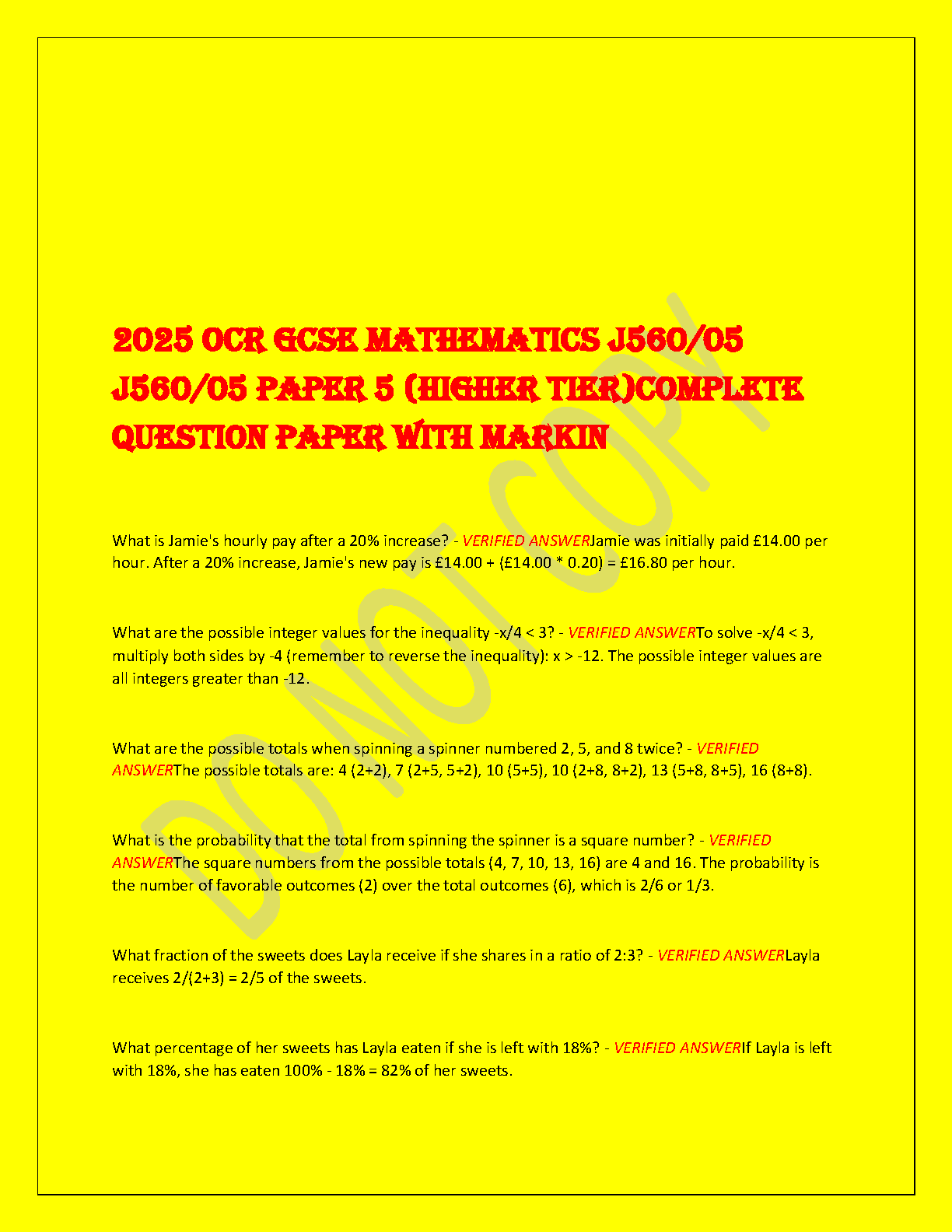 Struggling with OCR GCSE Higher Tier Maths? Get ahead with our latest, comprehensive resource for the 2025/2026 academic year. This guide covers the J560/05 Paper 5, providing the complete question paper along with a detailed, verified mark scheme. Each answer is clearly explained, covering key topics to boost your confidence. This is the ultimate tool to help you master the material, practice effectively, and pass your exams on the first attempt, leaving resits behind. Download now and start your journey to success!
