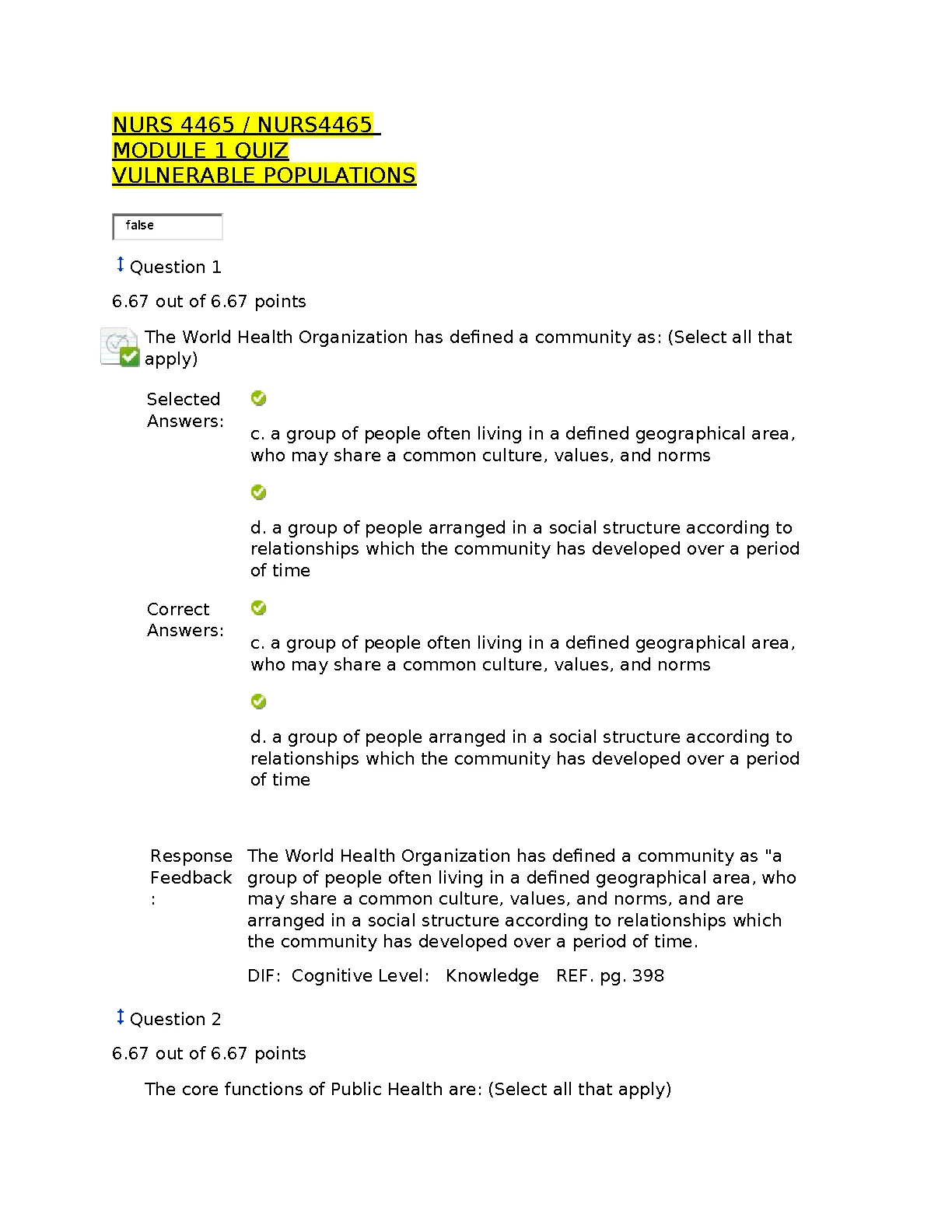 NURS 4465 MODULE 1 QUIZ VULNERABLE POPULATIONS. QUESTIONS AND ANSWERS. GRADED A+. DOWNLOAD on www.Hachedexams.com INSTANTLY.