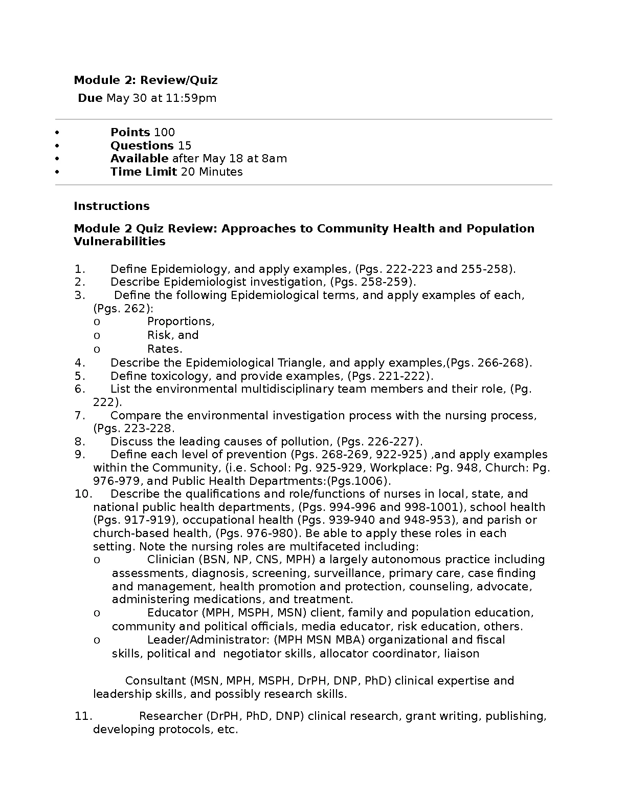 Module 2 Quiz Review: Approaches to Community Health and Population Vulnerabilities. QUESTIONS AND ANSWERS 2023