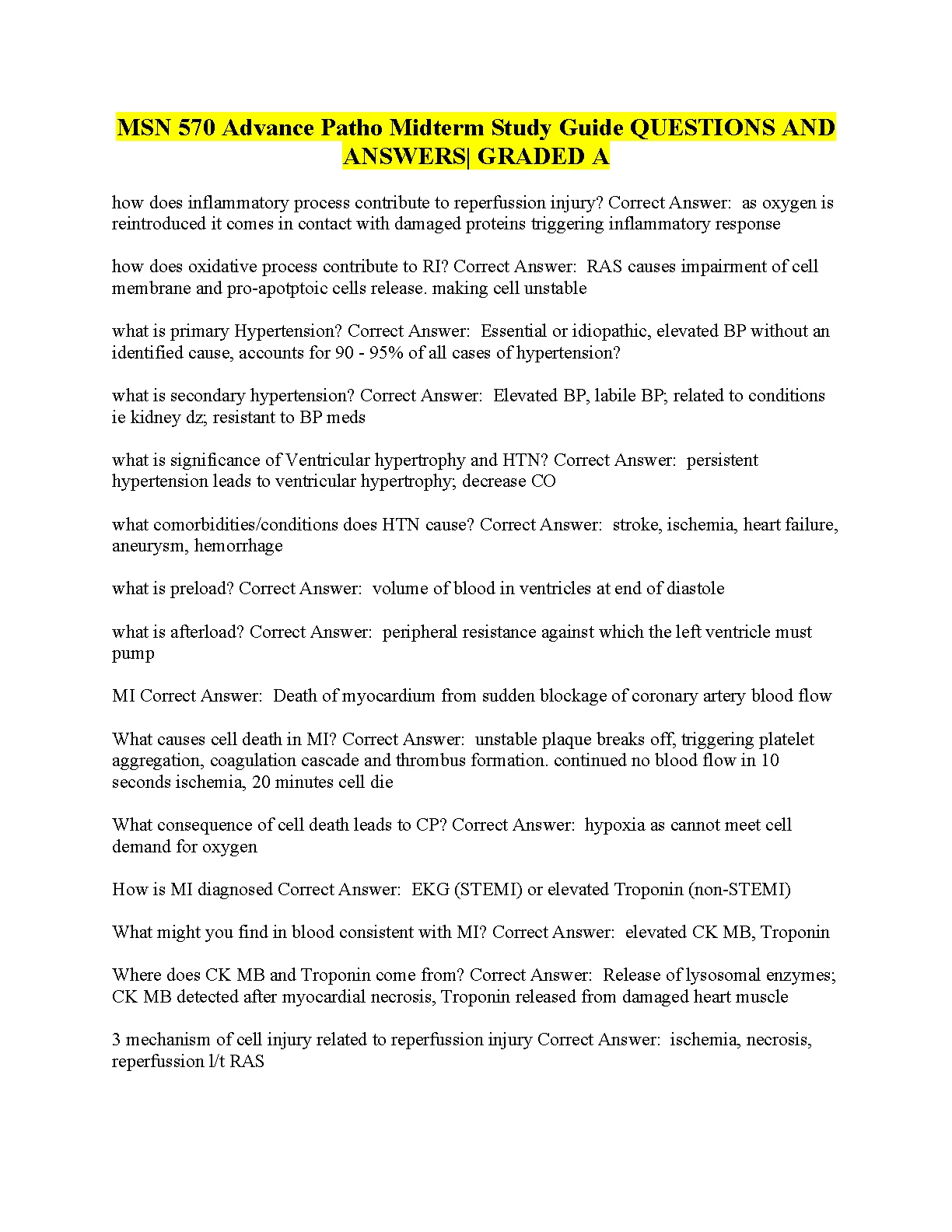 MSN 570 Advance Patho Midterm Study Guide QUESTIONS AND ANSWERS. GRADED A+. DOWNLOAD on www.Hackedexams.com INSTANTLY.