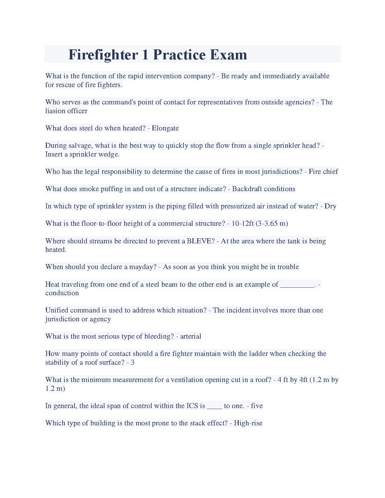 Firefighter 1 Practice Exam. QUESTIONS WITH 100% VERIFIED ANSWERS 2023. DOWNLOAD on www.Hackedexams.com INSTANTLY.