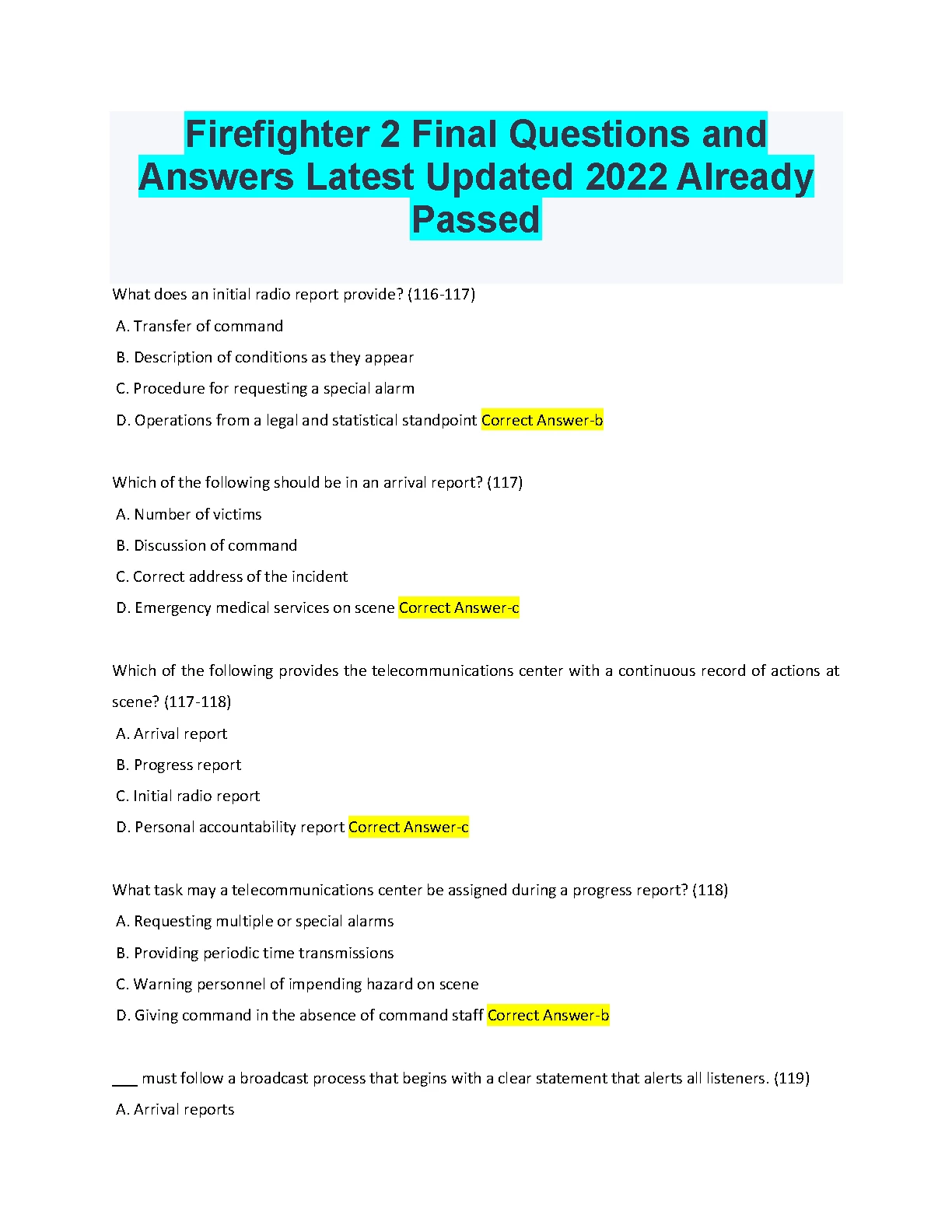 Firefighter 2 Final Questions and Answers Latest Updated 2023. DOWNLOAD on www.Hackedexams.com INSTANTLY.