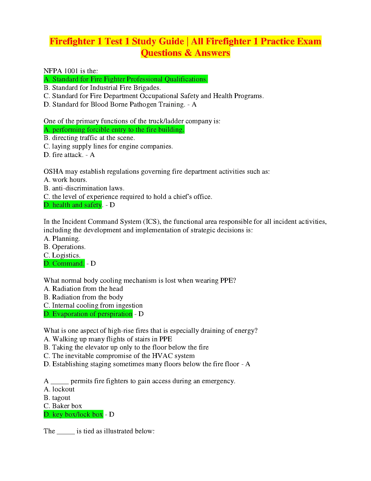 Firefighter 1 Test 1 Study Guide | All Firefighter 1. Practice Exam Questions & Answers 2023/2024. DOWNLOAD on www.Hackedexams.com INSTANTLY.