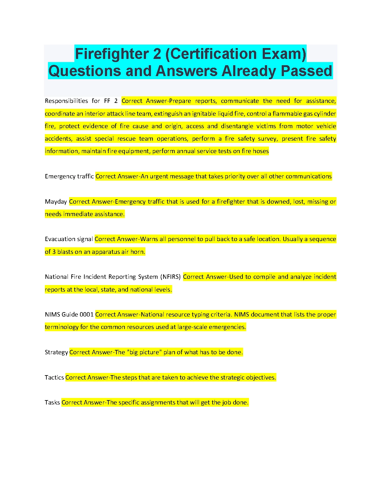 Firefighter 2 (Certification Exam) Questions and Answers 2023/2024. DOWNLOAD on www.Hackedexams.com INSTANTLY.