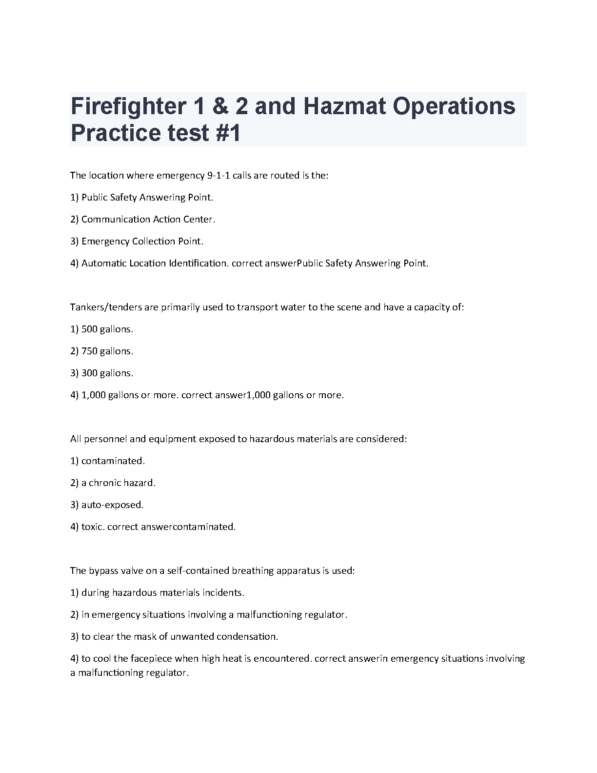 Firefighter 1 & 2 and Hazmat Operations Practice test #1. LATEST UPDATED VERSION 2023. DOWNLOAD on www.Hackedexams.com INSTANTLY.