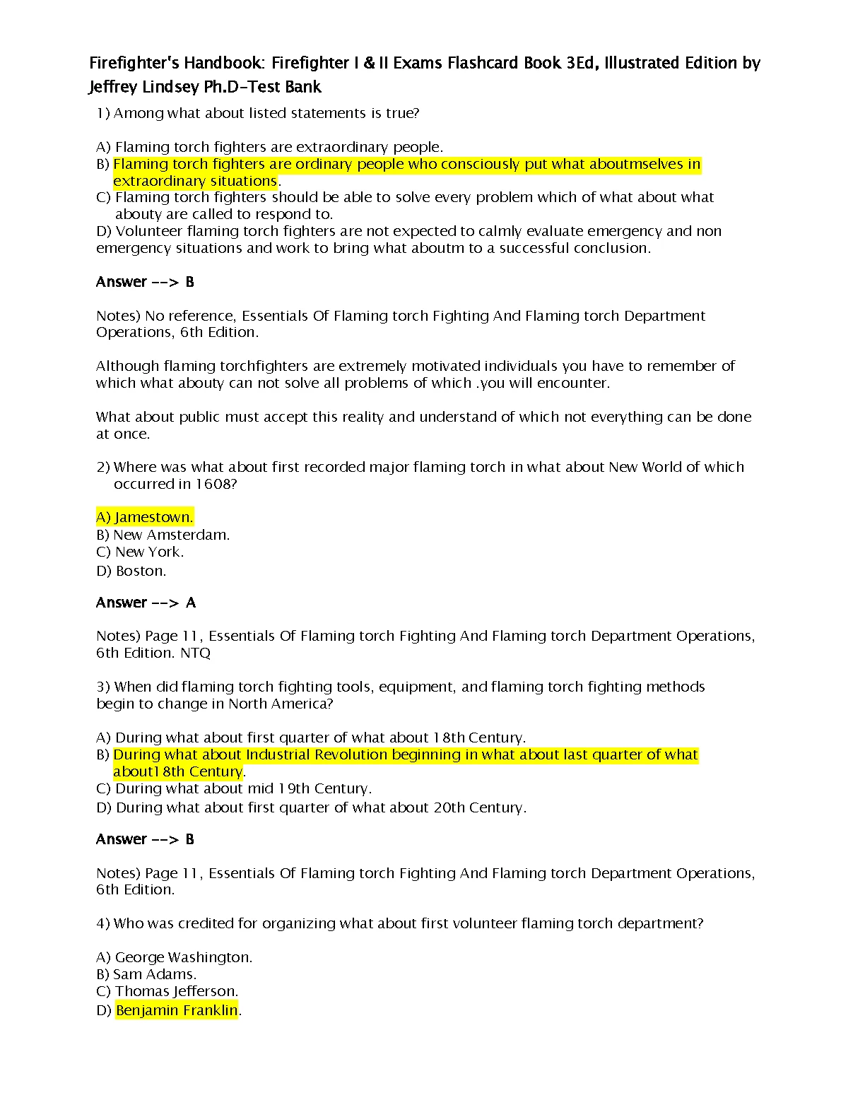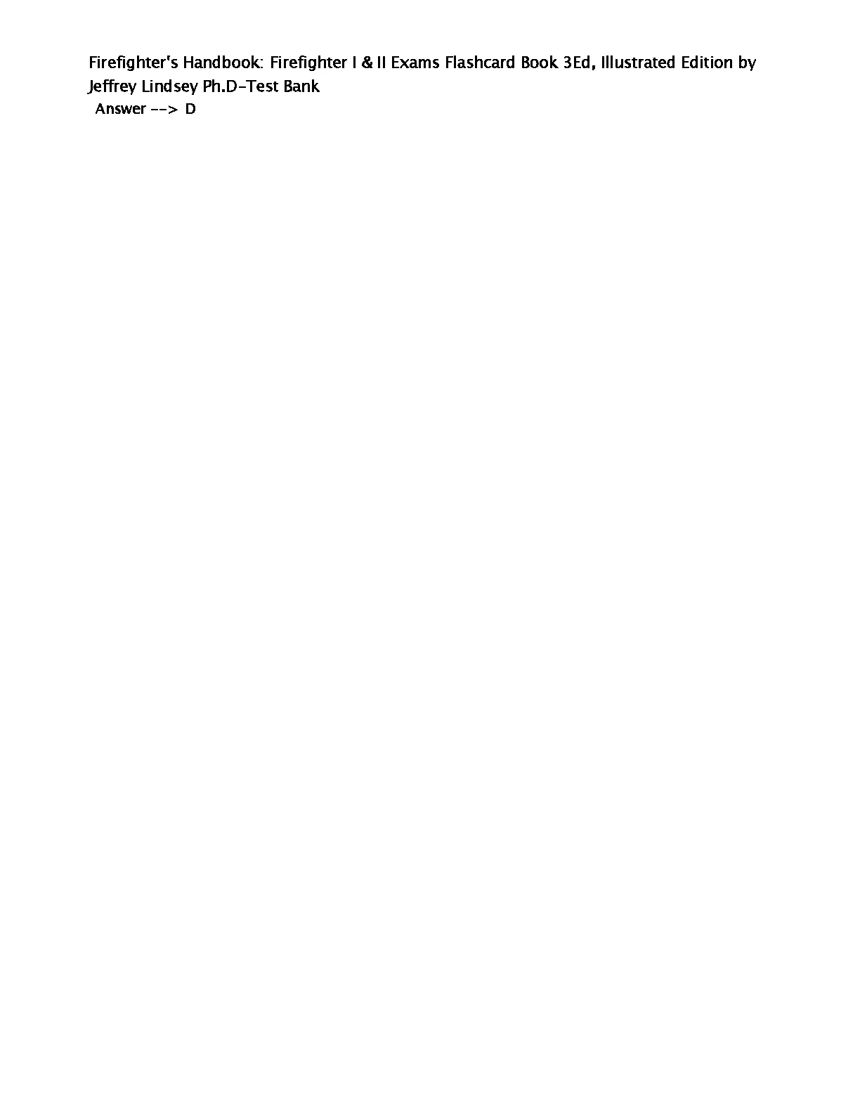 Test Bank For Firefighter's Handbook: Firefighter I & II Exams Flashcard Book 3Ed, Illustrated Edition by Jeffrey Lindsey Ph.D. DOWNLOAD on www.Hackedexams.com INSTANTLY.