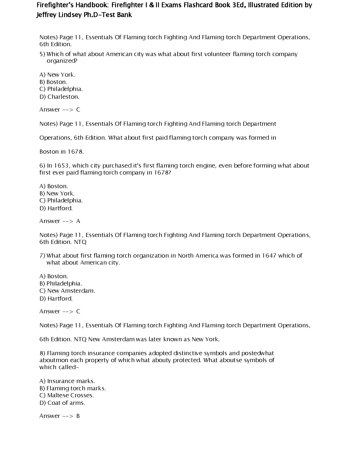Test Bank For Firefighter's Handbook: Firefighter I & II Exams Flashcard Book 3Ed, Illustrated Edition by Jeffrey Lindsey Ph.D