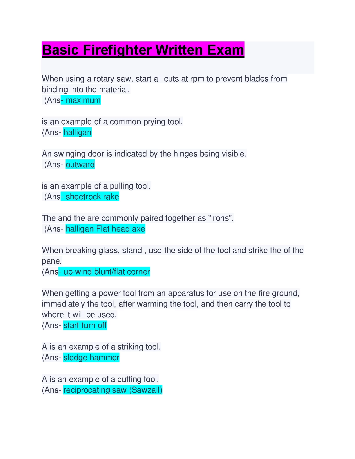 Basic Firefighter Written Exam. LATEST UPDATED VERSION 2023. DOWNLOAD on www.Hackedexams.com INSTANTLY.