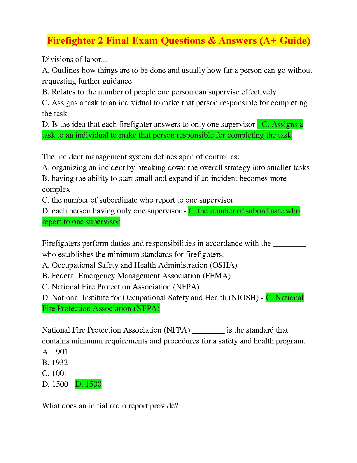 Firefighter 2 Final Exam Questions & Answers. GRADED A+