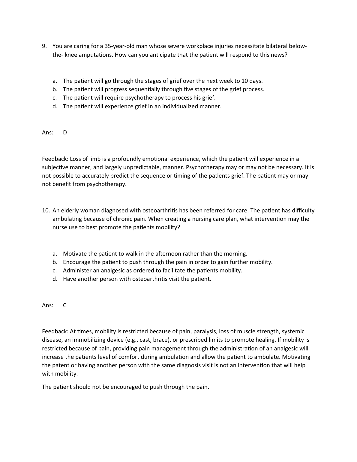 Adult Nursing (NUR 105) Med Surg test questions 10: Principles and Practices of Rehabilitation LATEST UPDATE