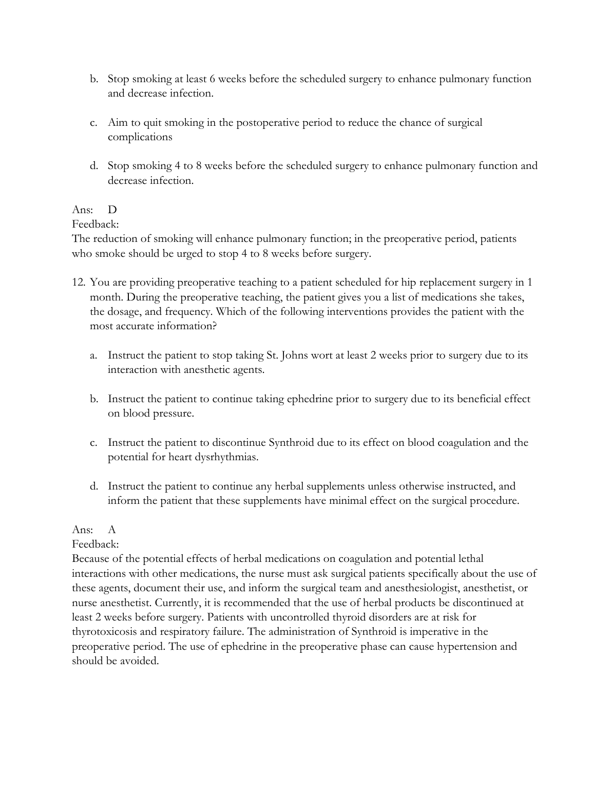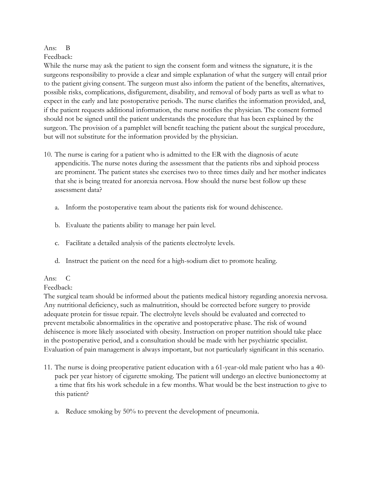 ATI Adult Nursing (NUR 105) Med Surg Test questions and Answers Chapter 17: Preoperative Nursing Management