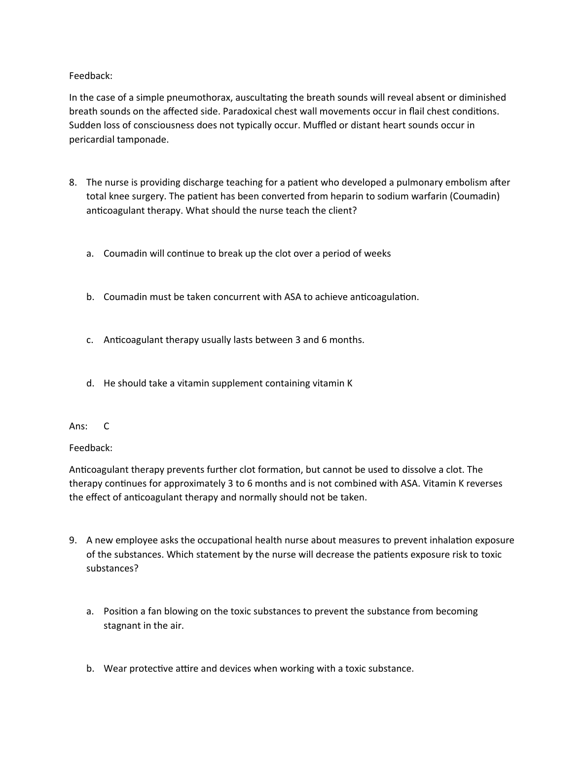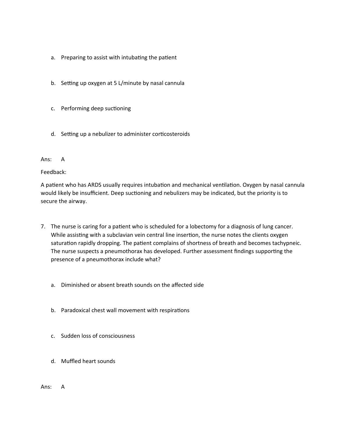 Adult Nursing (NUR 105) Med Surg test questions Chapter 23: Management of Patients with Chest and Lower Respiratory Tract Disorders WITH FEEDBACKS