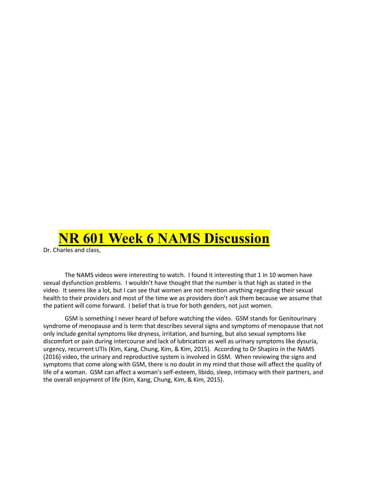 NR 601 Week 6 NAMS Discussion, LATEST UPDATED VERSION 2023. DOWNLOAD on www.Hackedexams.com INSTANTLY.