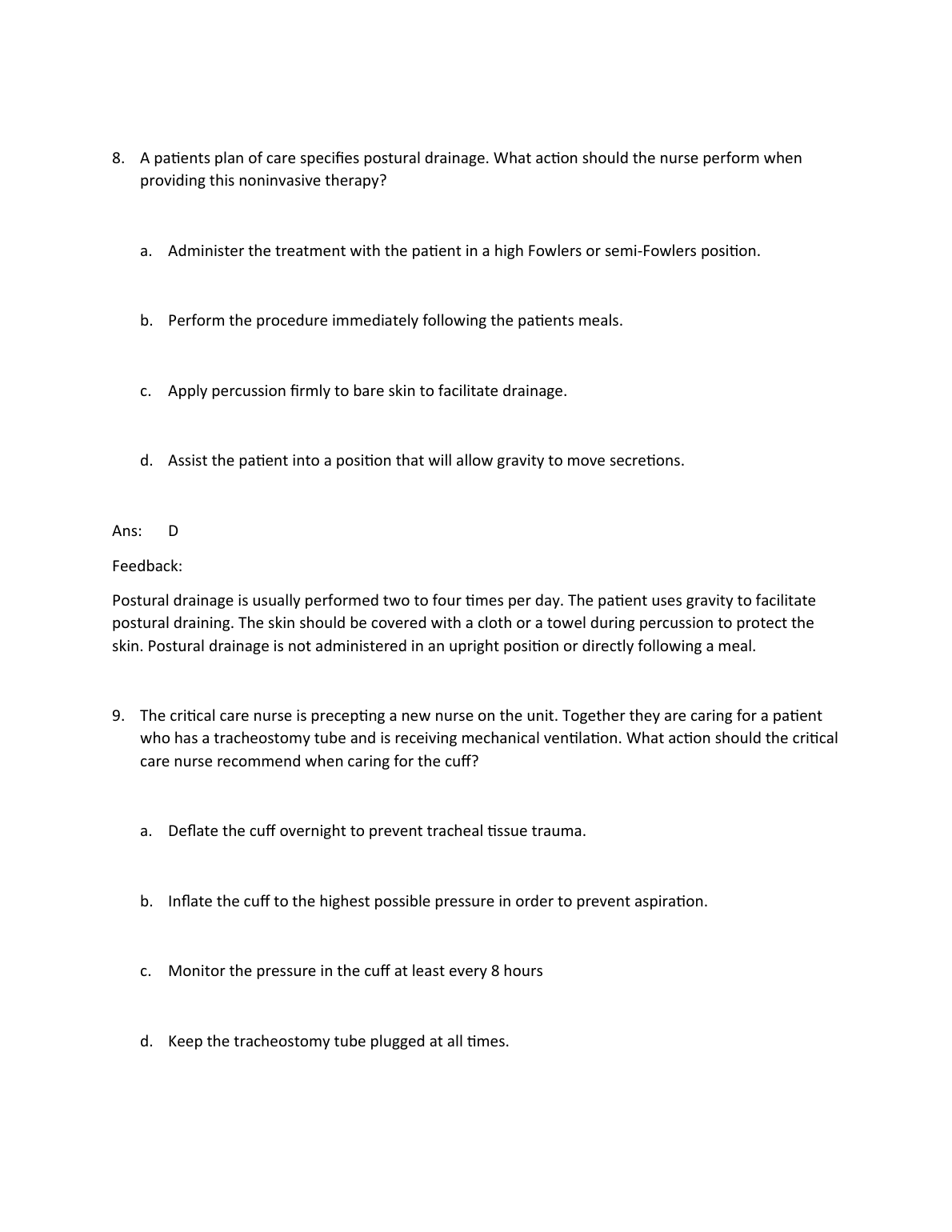 Adult Nursing (NUR 105) Med Surg Test Questions And Answers (Chapter 21: Respiratory Care Modalities) 2023/2024