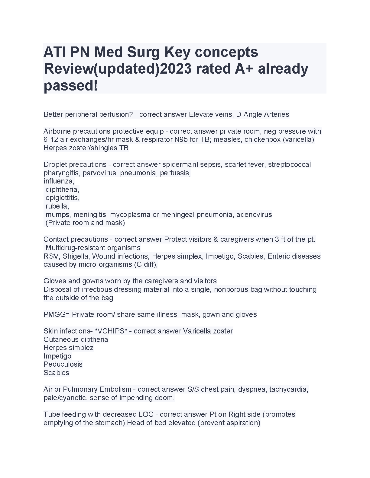 ATI PN Med Surg Key concepts Review. LATEST UPDATED VERSION 2023