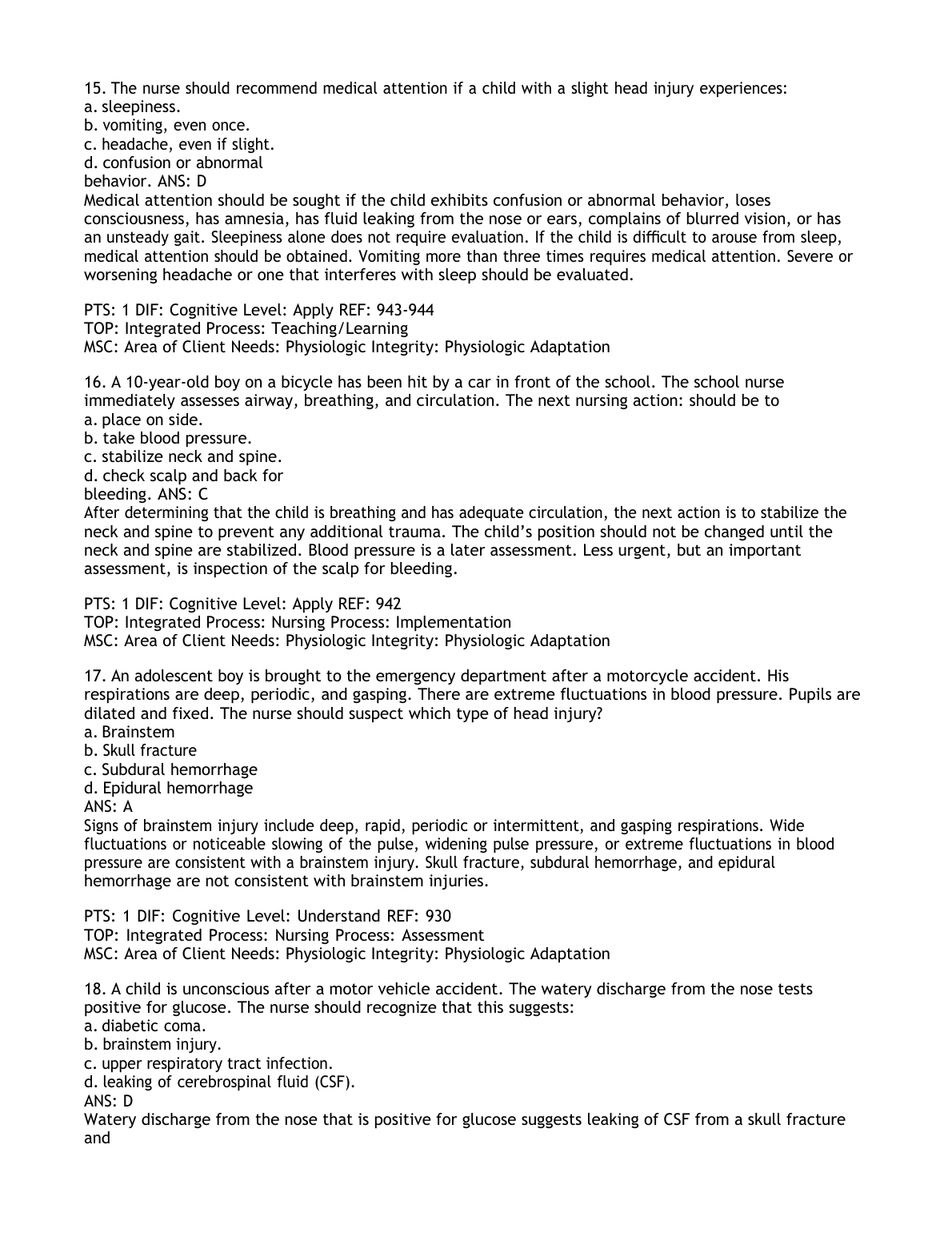 ATI MED SURG PROCTORED EXAMS. WELL ELABORATED STUDY GUIDE (Chapter 28: The Child with Cerebral Dysfunction) 2023