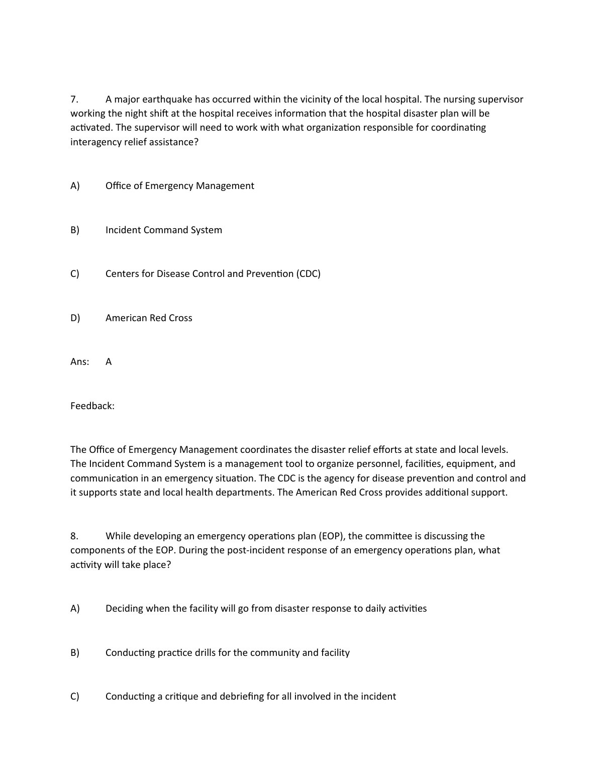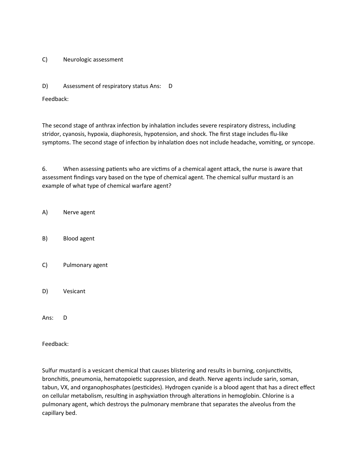Sophia Milestone Adult Nursing (NUR 105) Med Surg Test Latest Verified Questions And All Correct Answers with Explanations (Chapter 73: Terrorism, Mass Casualty and Disaster Nursing) 2023/2024