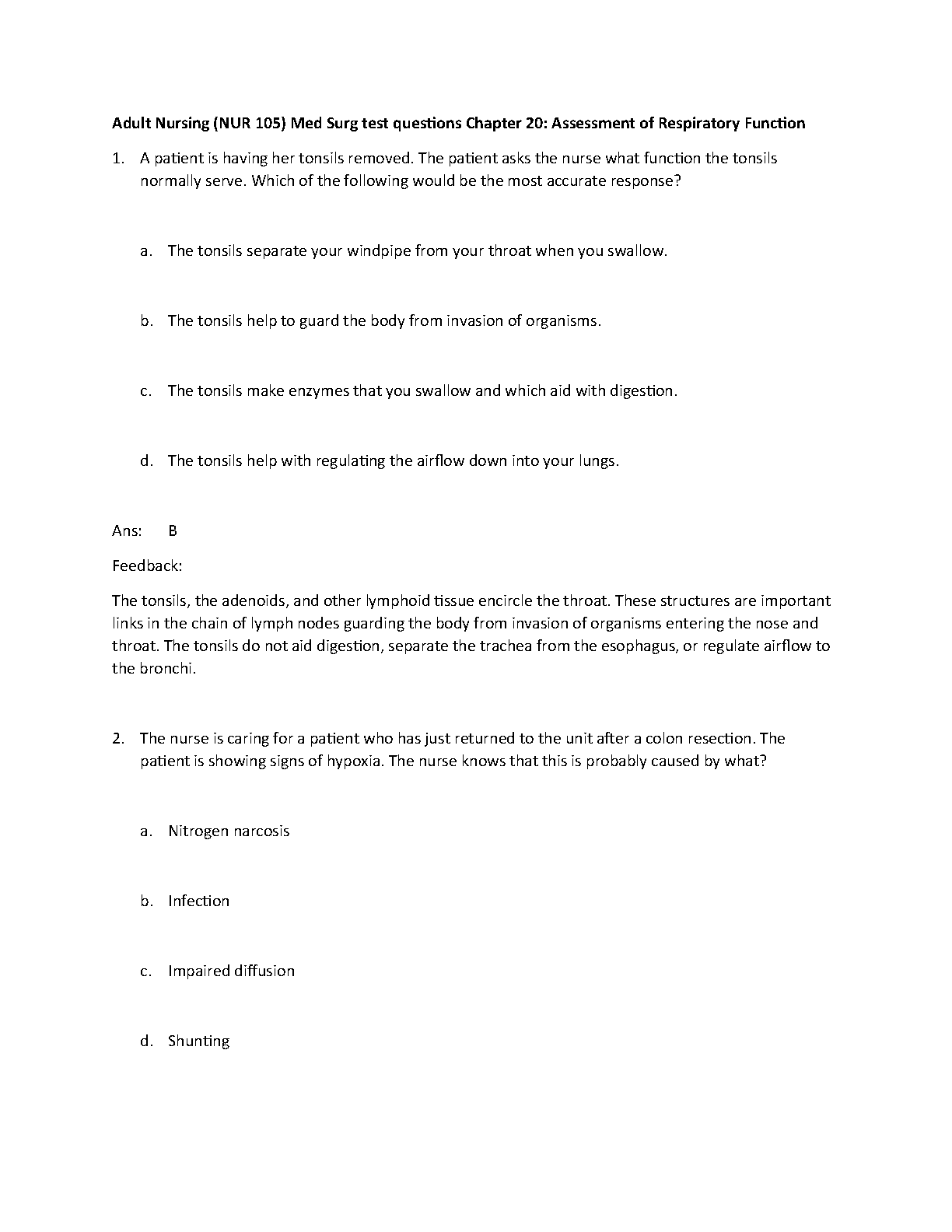 Adult Nursing (NUR 105) Med Surg test questions Chapter 20: Assessment of Respiratory Function. BRAND NEW 2023!!!. DOWNLOAD ON www.Hackedexams.com Instantly.