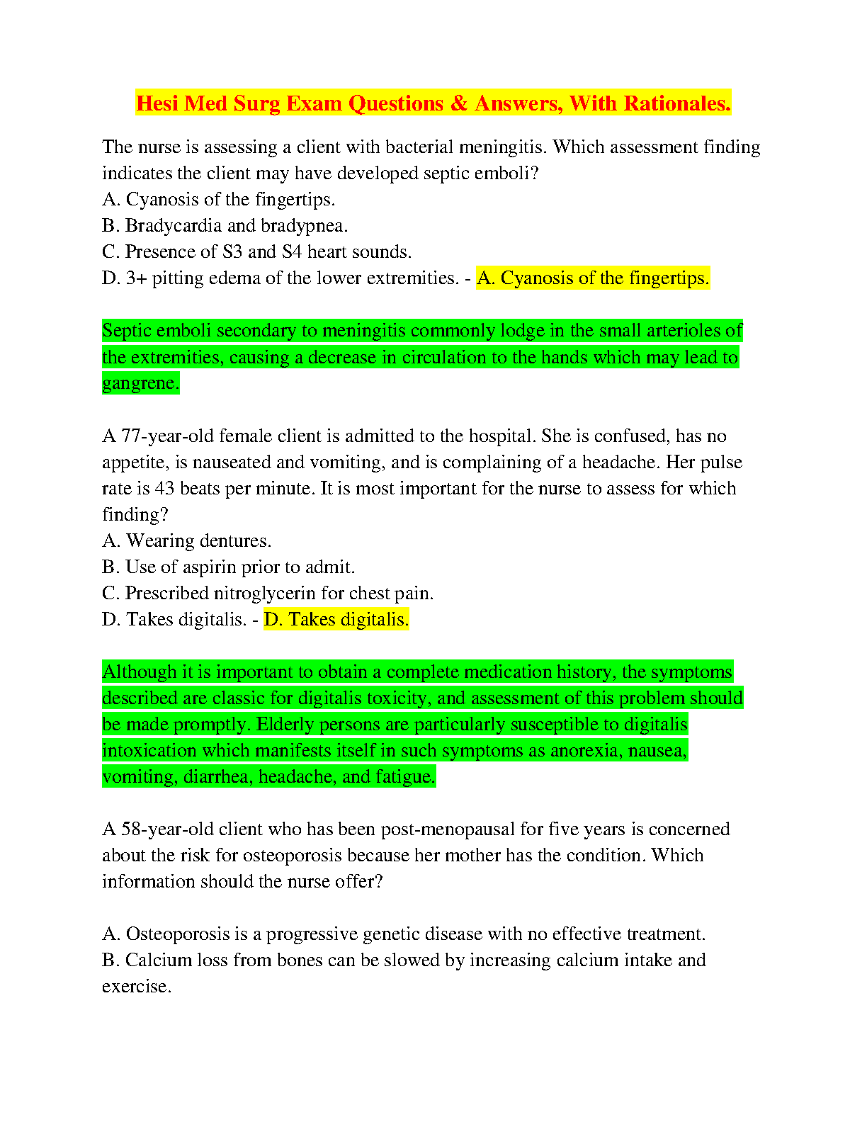 Hesi Med Surg Exam Questions & Answers, With Rationales 2023/2024