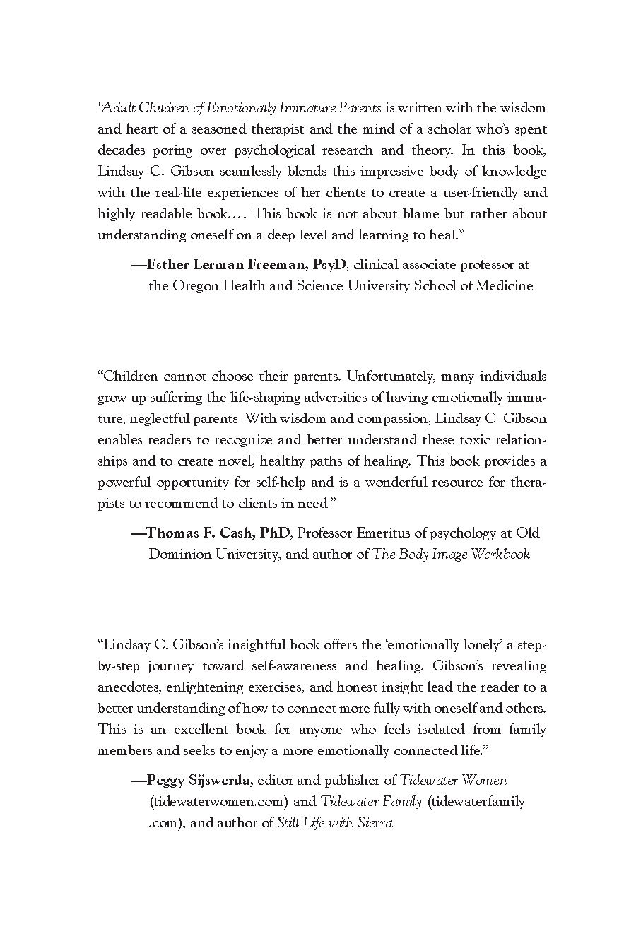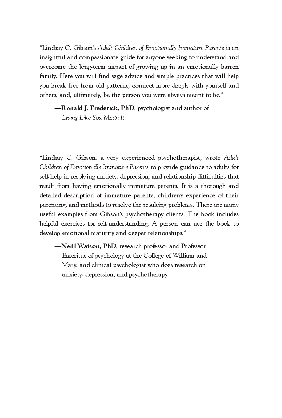 Discover the path to recovery and emotional freedom with the definitive guide, 'Adult Children of Emotionally Immature Parents' by clinical psychologist Lindsay C. Gibson. This transformative book provides deep insights into the effects of growing up with rejecting or self-involved parents. Learn to recognize the signs of emotional immaturity, heal from the pain of your childhood, and build healthier, more fulfilling relationships. This essential resource empowers you to break free from lingering feelings of anger and disappointment, and finally become the person you were always meant to be.
