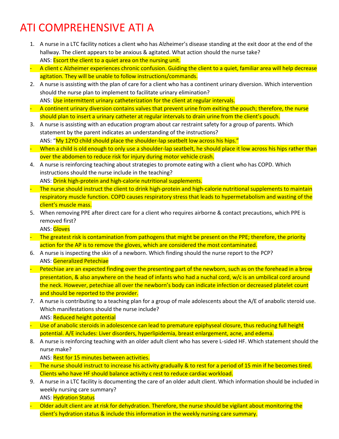 ATI COMPREHENSIVE ATI A. QUESTIONS AND ANSWERS. RATED A+