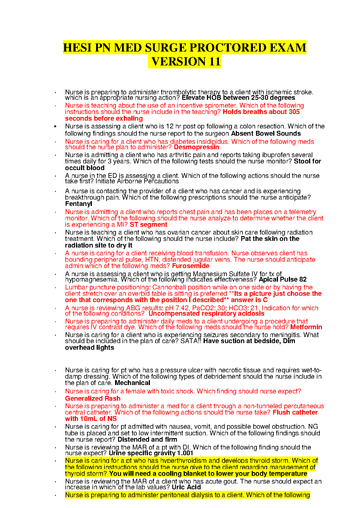 HESI PN MED SURGE PROCTORED EXAM VERSION 11 COMPLETE AND RATED A+. DOWNLOAD INSTANTLY on www.hackedexams.com INSTANTLY