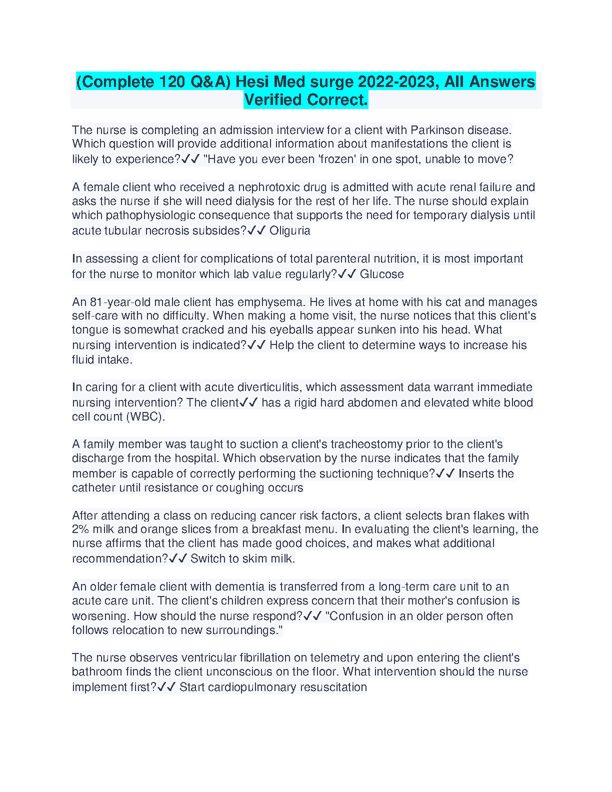 (Complete 120 Q&A) Hesi Med surge 2022/2023, All Answers Verified Correct.. DOWNLOAD INSTANTLY on www.hackedexams.com INSTANTLY