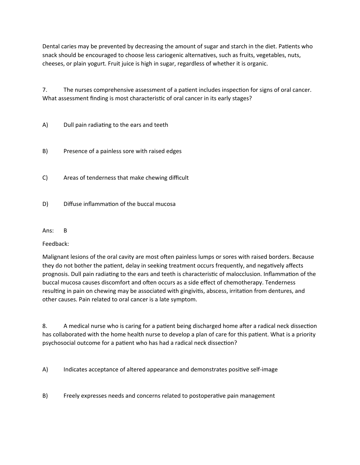 Sophia Milestone Adult Nursing (NUR 105) Med Surg Test. Questions and all Correct Answers with Explanations Chapter 45: Management of Patients with Oral and Esophageal Disorders 2023. DOWNLOAD ON www.Hackedexams.com Instantly.