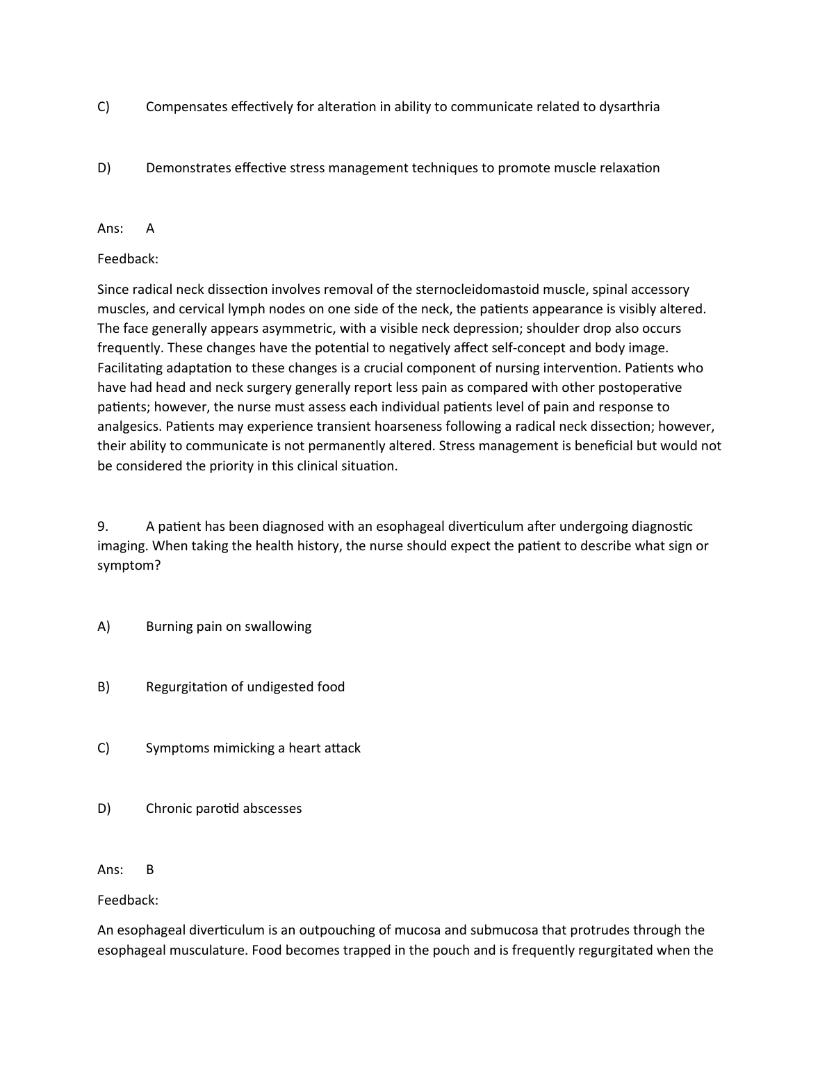Sophia Milestone Adult Nursing (NUR 105) Med Surg Test. Questions and all Correct Answers with Explanations Chapter 45: Management of Patients with Oral and Esophageal Disorders 2023