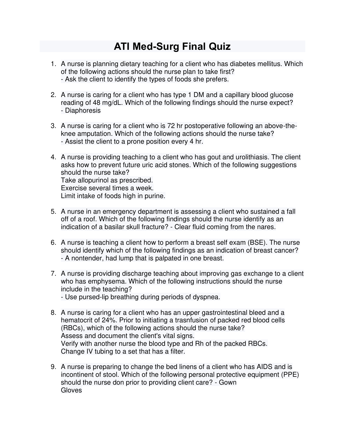 ATI Med-Surg Final Quiz. QUESTIONS WITH100% VERIFIED ANSWERS. DOWNLOAD ON www.Hackedexams.com Instantly.