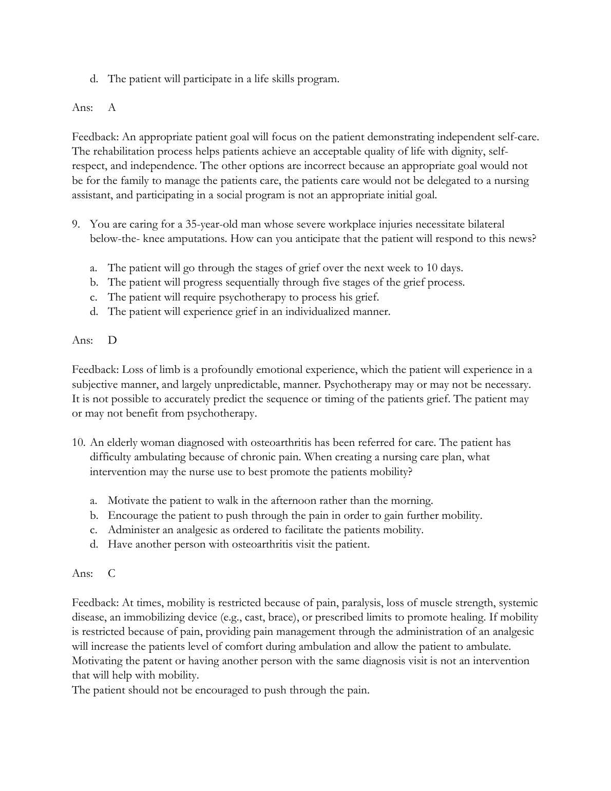 ATI Adult Nursing (NUR 105) Med Surg Test Questions 10: Principles and Practices of Rehabilitation 2023/2024