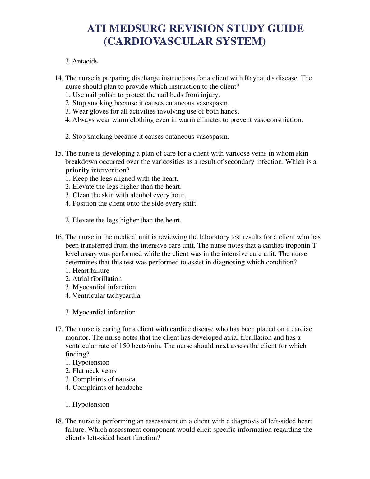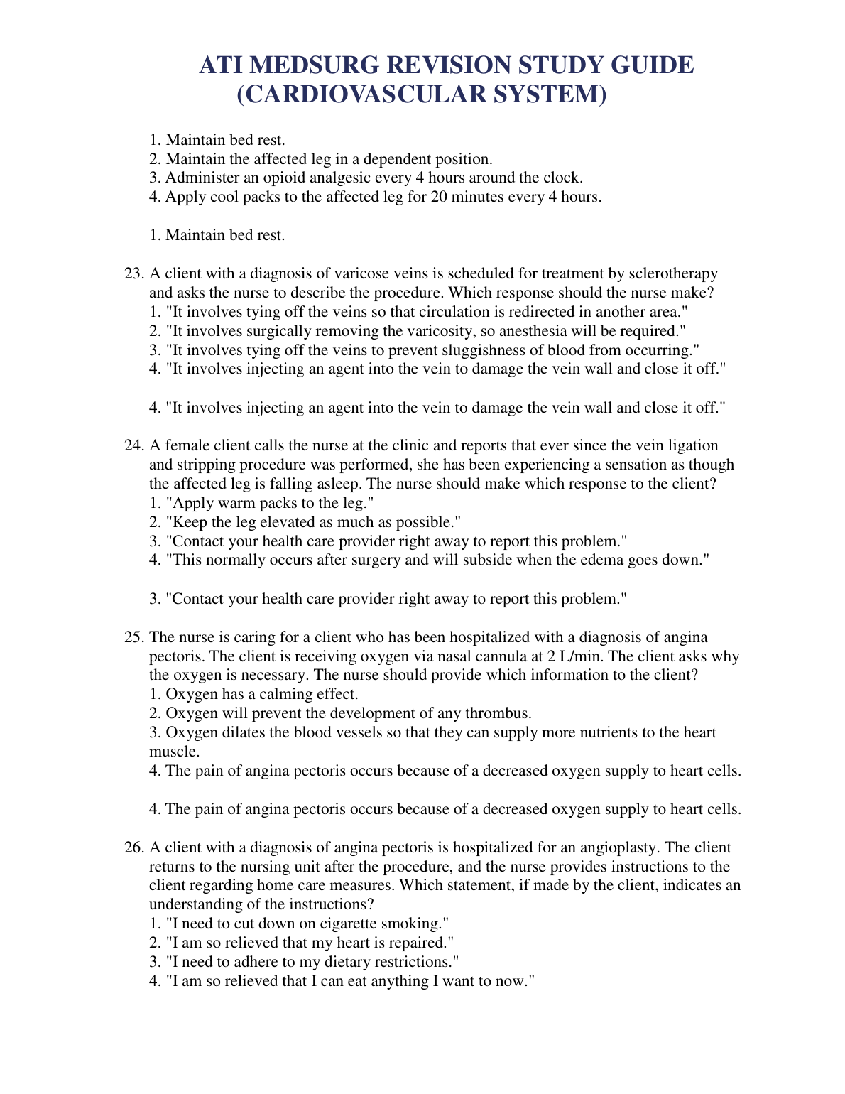 ATI MEDSURG REVISION STUDY GUIDE QUESTION AND ANSWERS (CARDIOVASCULAR SYSTEM) 2023/2024