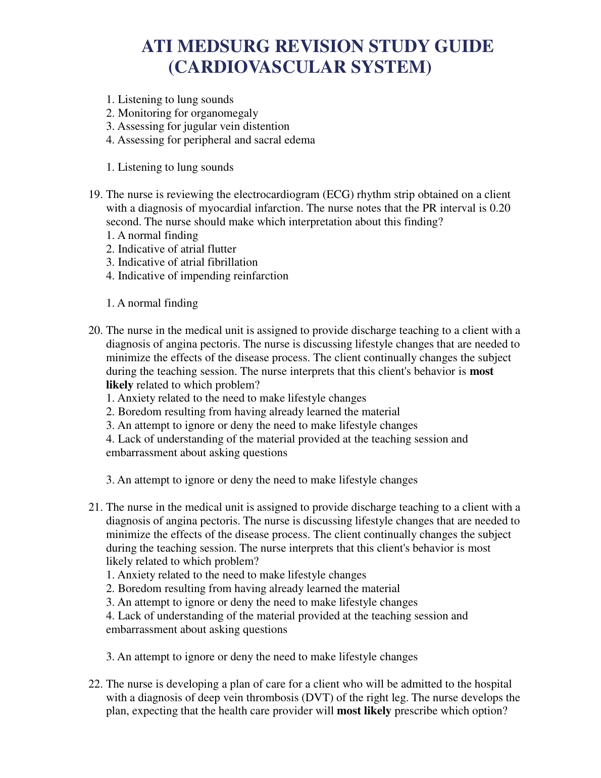ATI MEDSURG REVISION STUDY GUIDE QUESTION AND ANSWERS (CARDIOVASCULAR SYSTEM) 2023/2024. DOWNLOAD ON www.Hackedexams.com INSTANTLY.