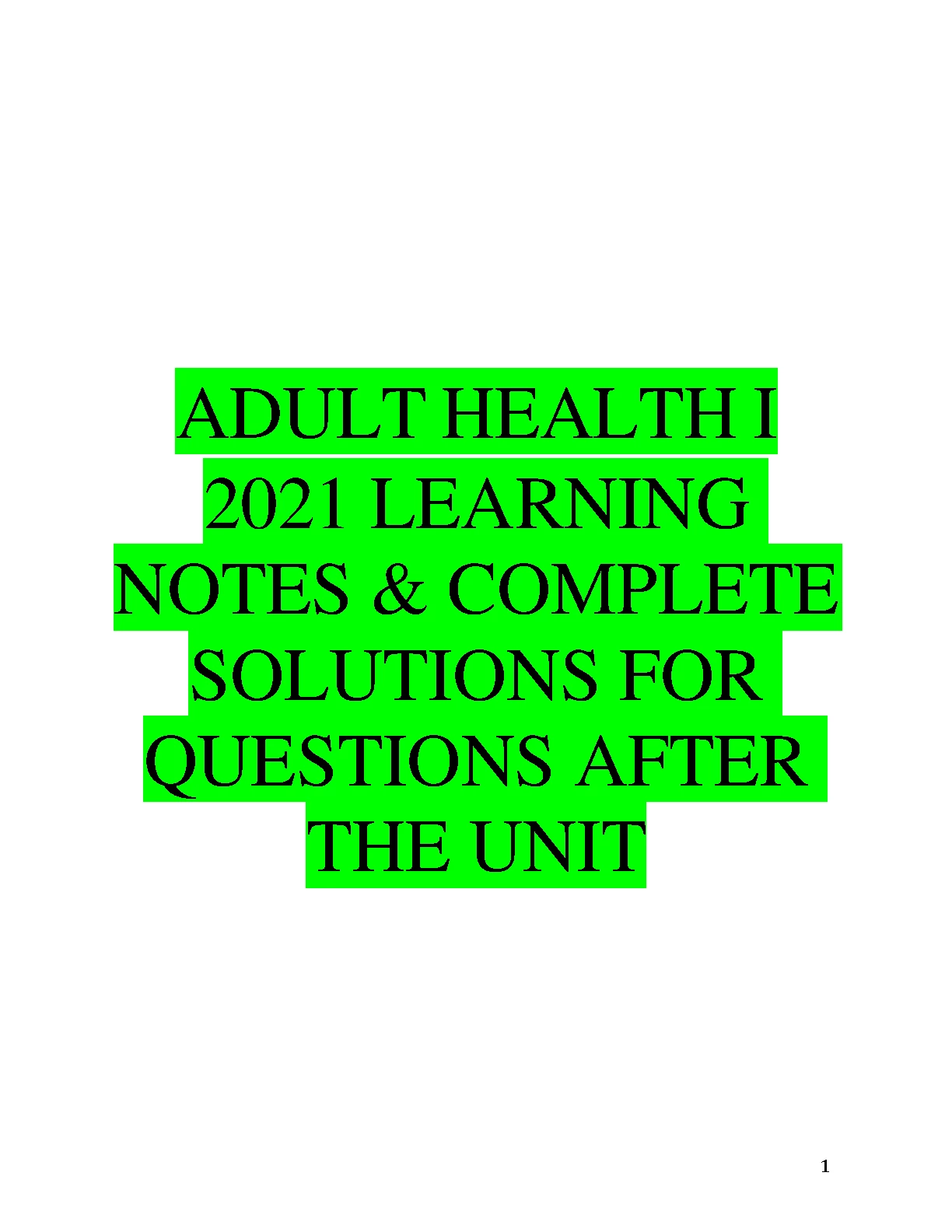 ADULT HEALTH I LEARNING NOTES & COMPLETE SOLUTIONS FOR QUESTIONS AFTER THE UNIT BEST RATED AND UPDATED STUDY GUIDE FOR 2023/2024. DOWNLOAD INSTANTLY on www.hackedexams.com INSTANTLY