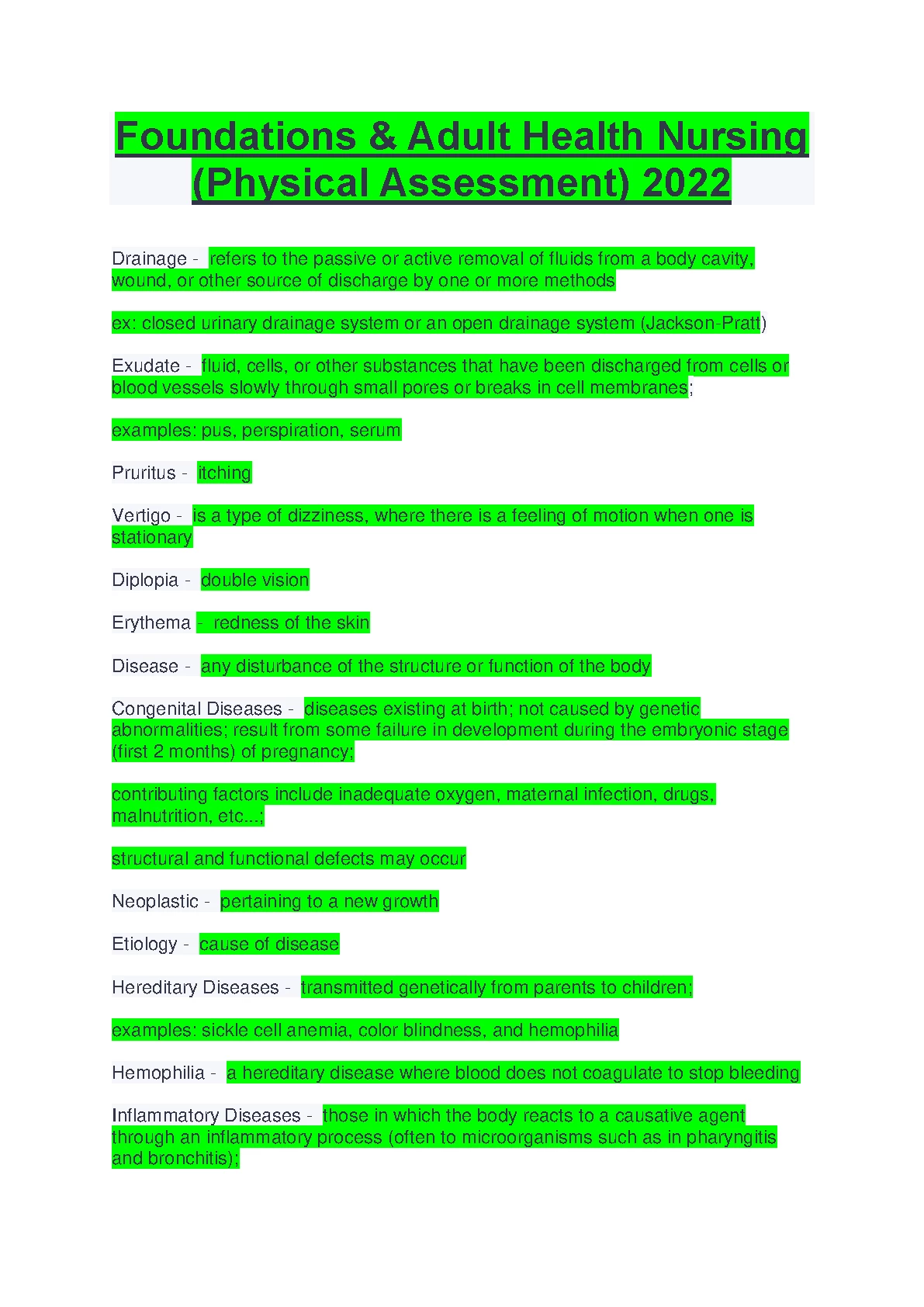 Foundations & Adult Health Nursing (Physical Assessment) UPDATED SOLUTION. DOWNLOAD INSTANTLY on www.hackedexams.com INSTANTLY