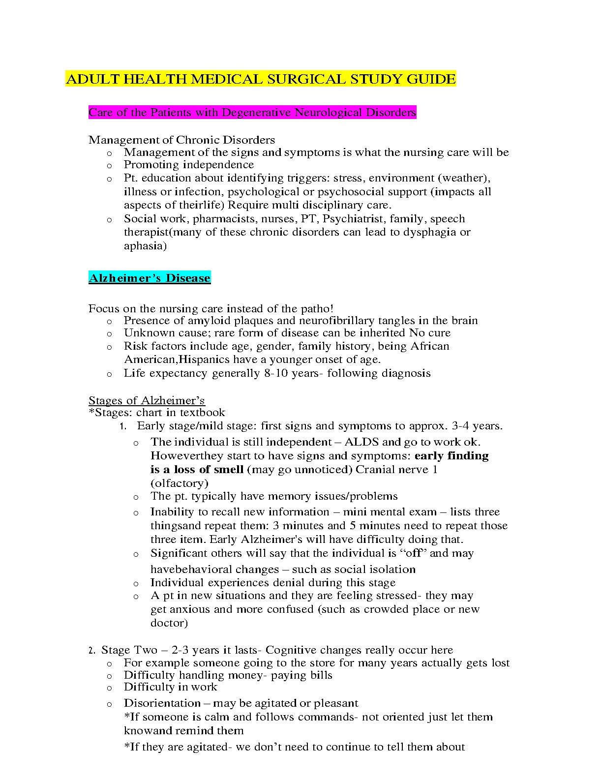 ADULT HEALTH MEDICAL SURGICAL STUDY GUIDE UPDATED AND RATED A+