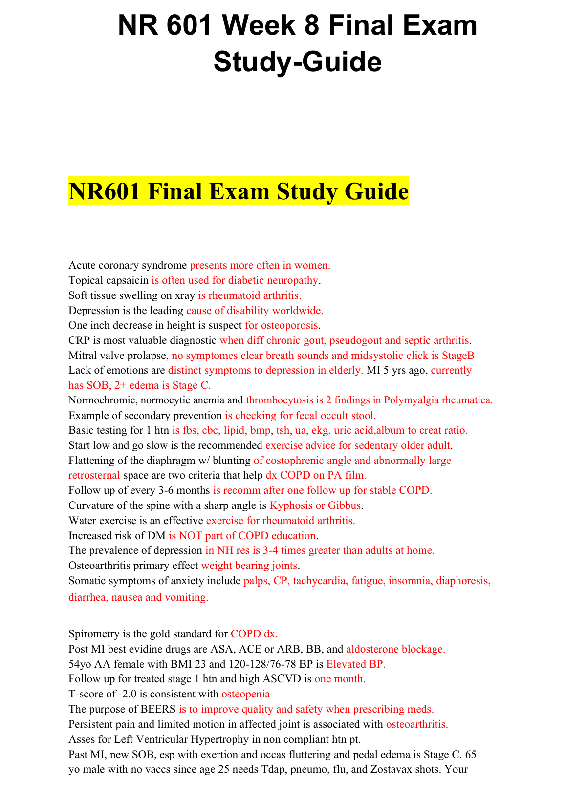 NR601 Final Exam. Well Elaborated Study Guide 2023