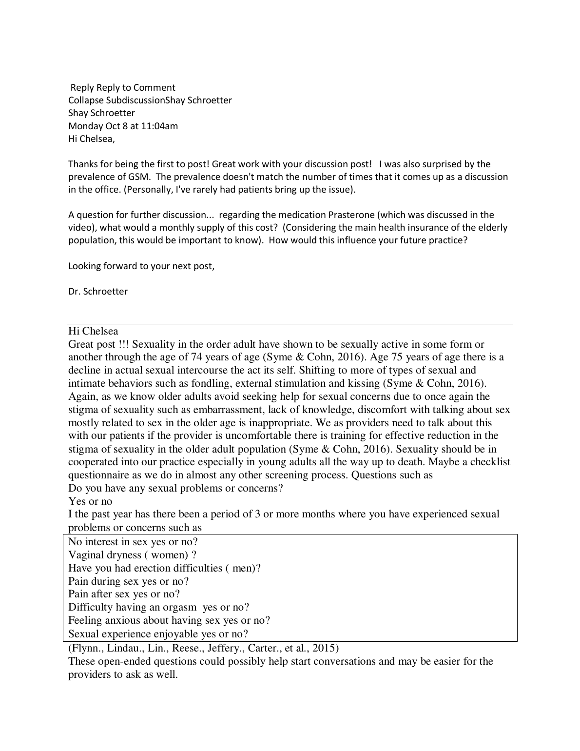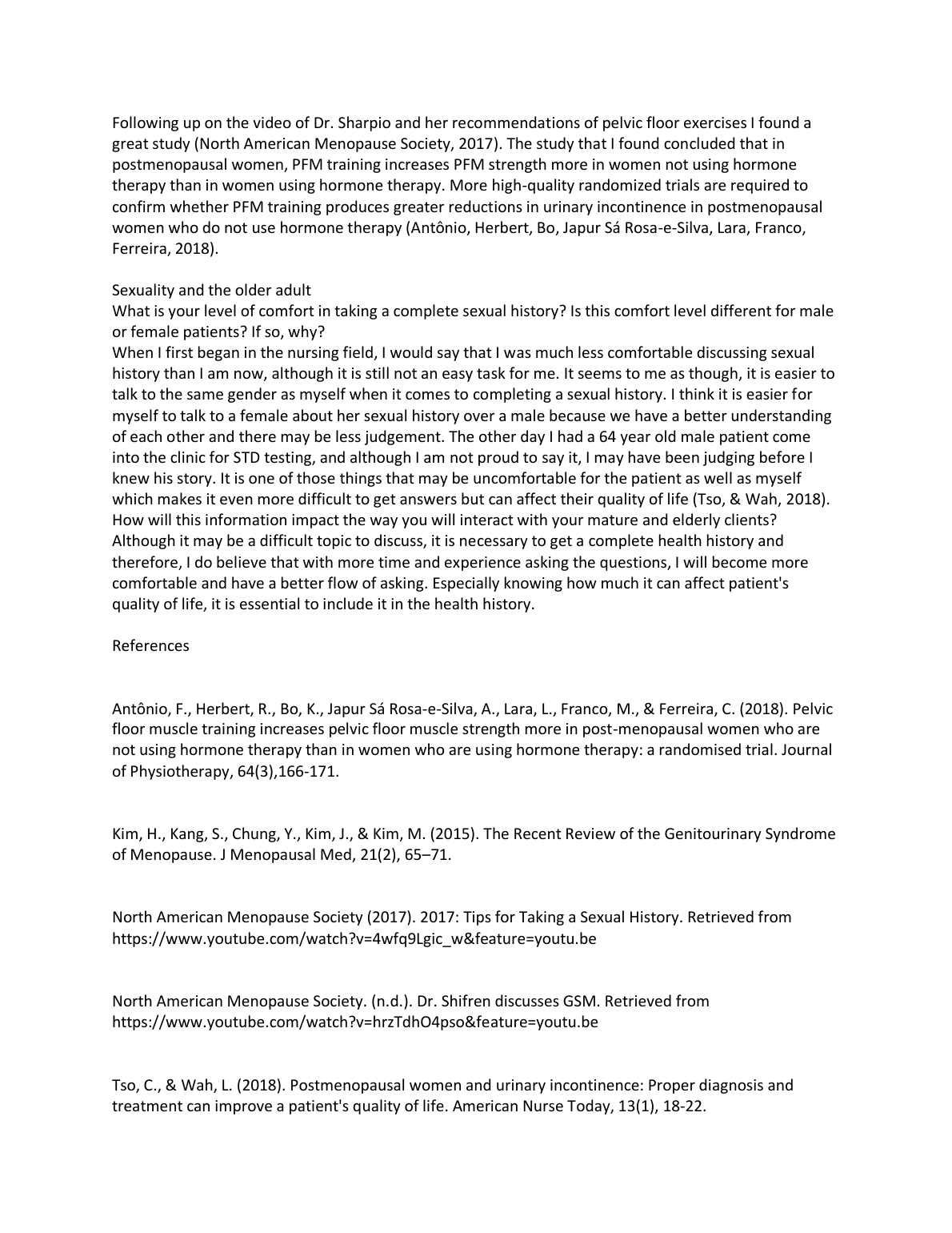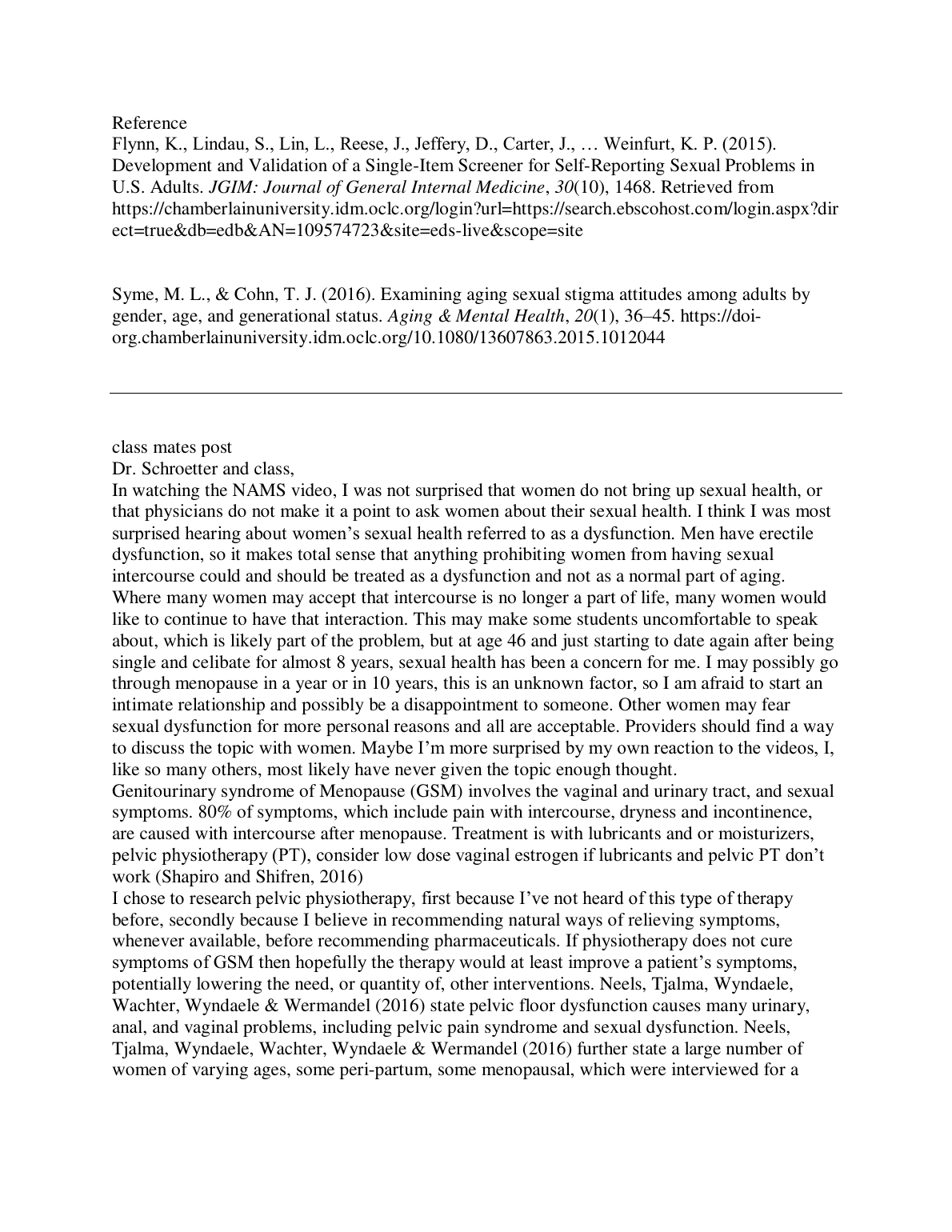 Week 6: Post-Menopausal and Sexuality Issues in the Maturing and Older Adult Discussion 2022/2023