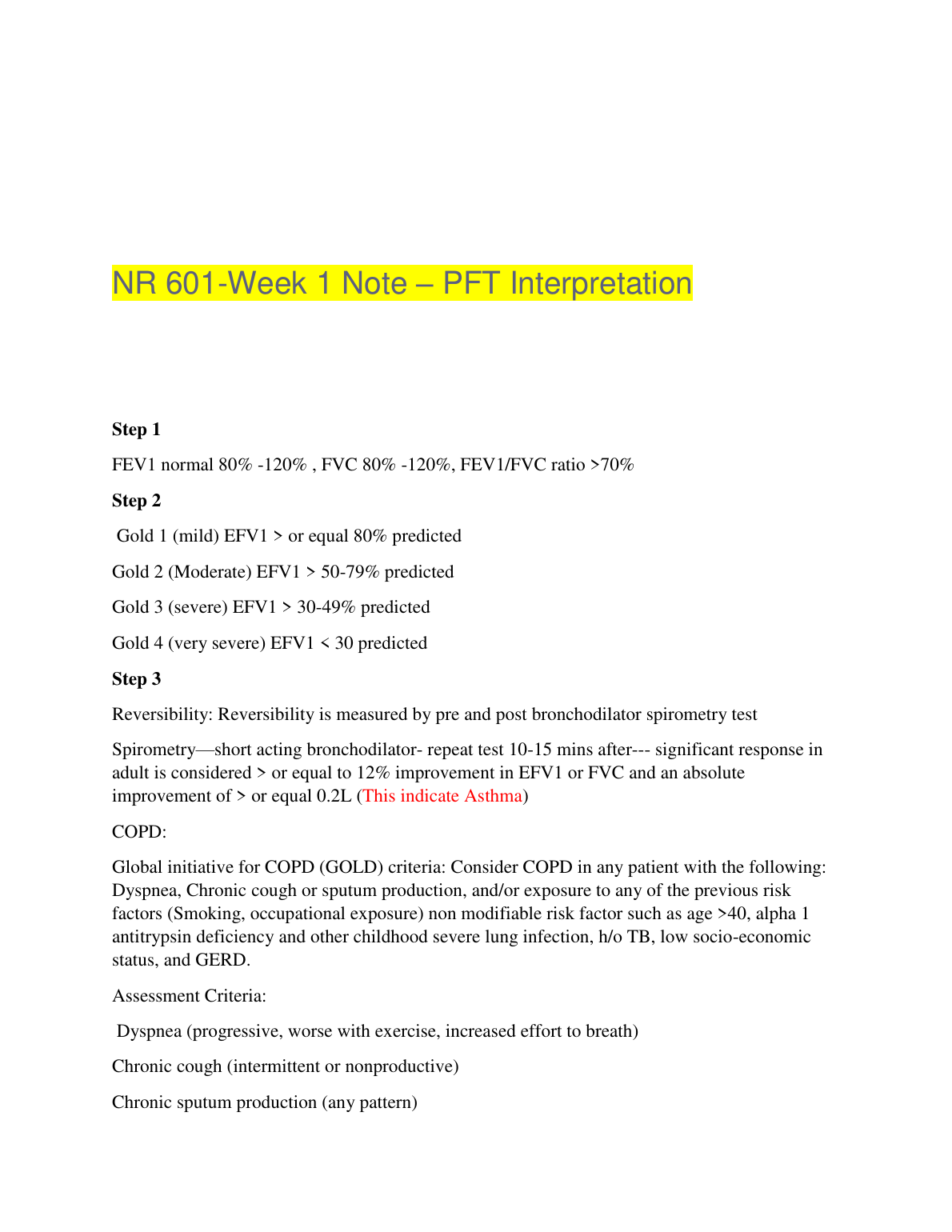 NR 601 Week 1 Note PFT Interpretation. GENUINE AND LATEST UPDATED VERSION 2023