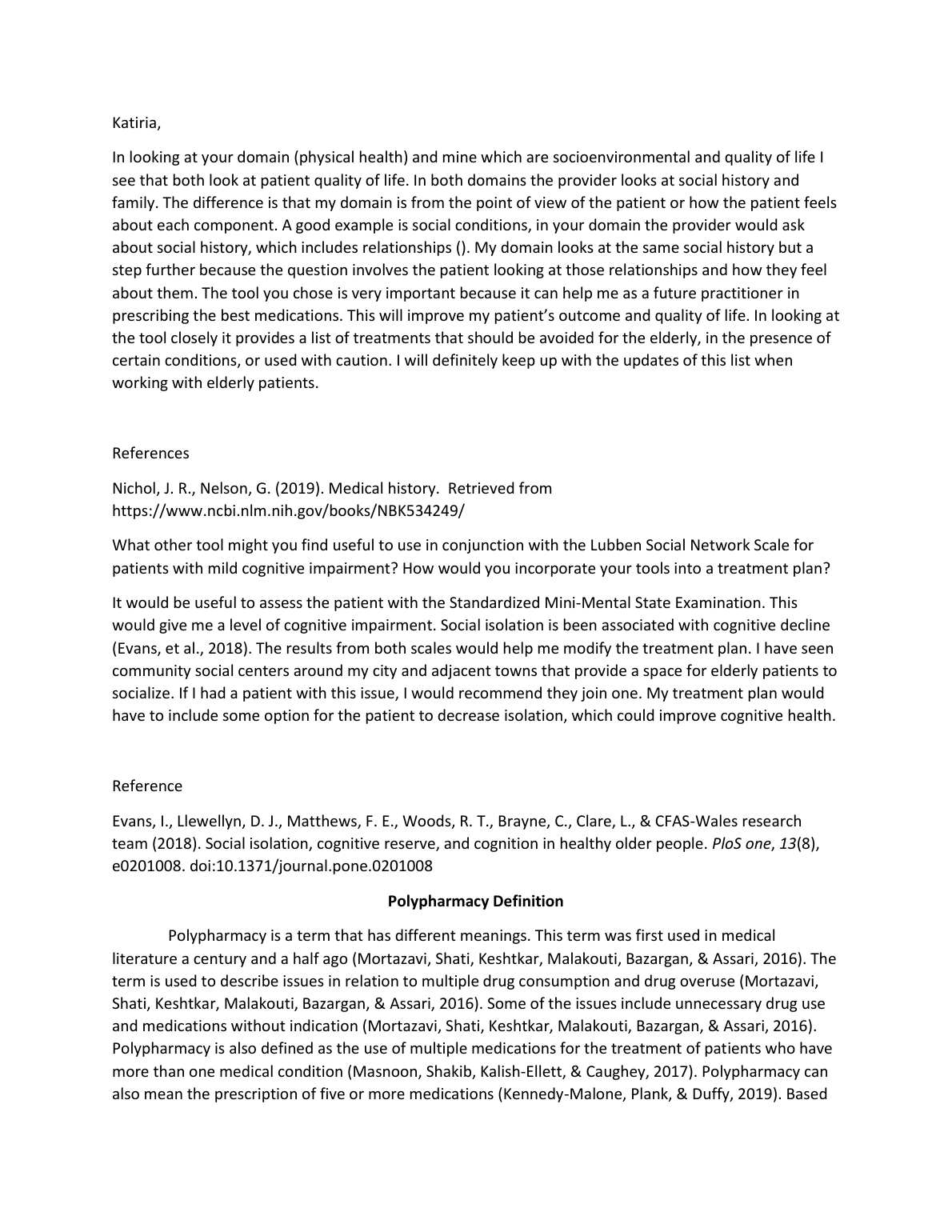NR 601 week 1 Discussion Board Comprehensive Geriatric Assessment Socioenvironmental Health Domain 2023
