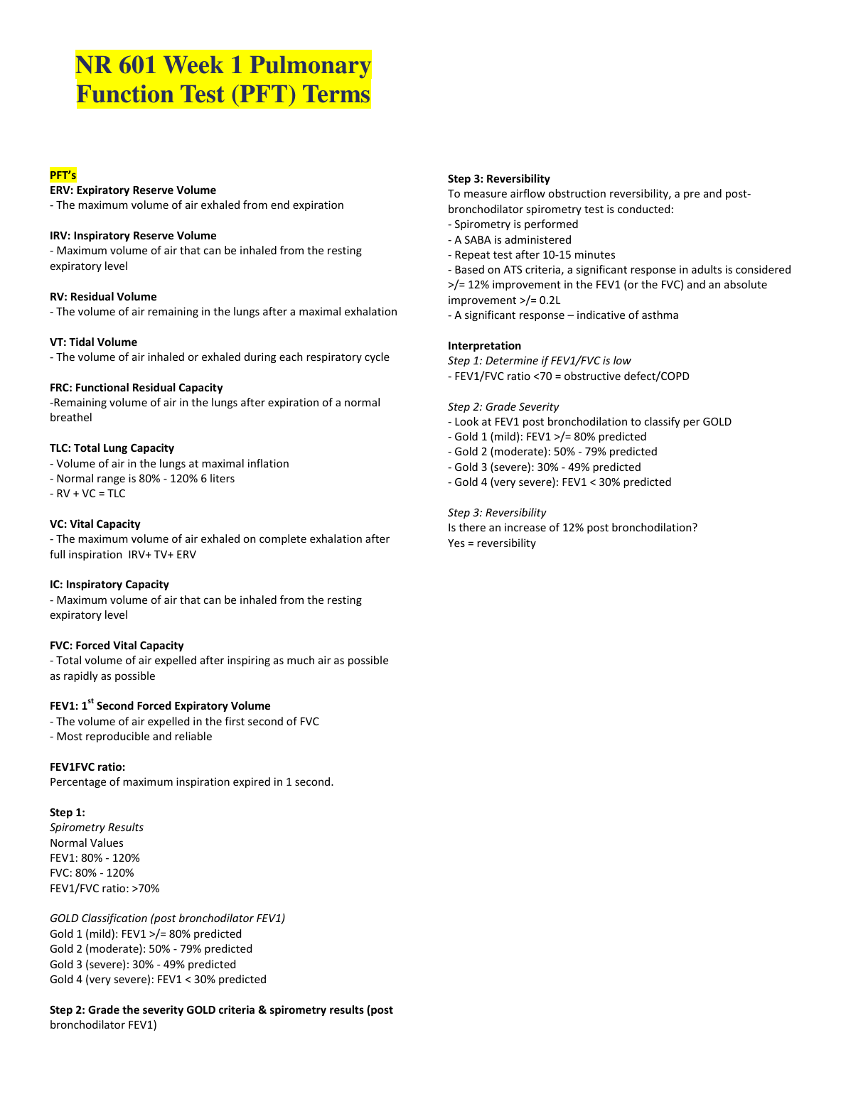 NR 601 Week 1 Pulmonary Function Test (PFT) Terms. WELL ELABORATED AND VERIFIED 2023/2024