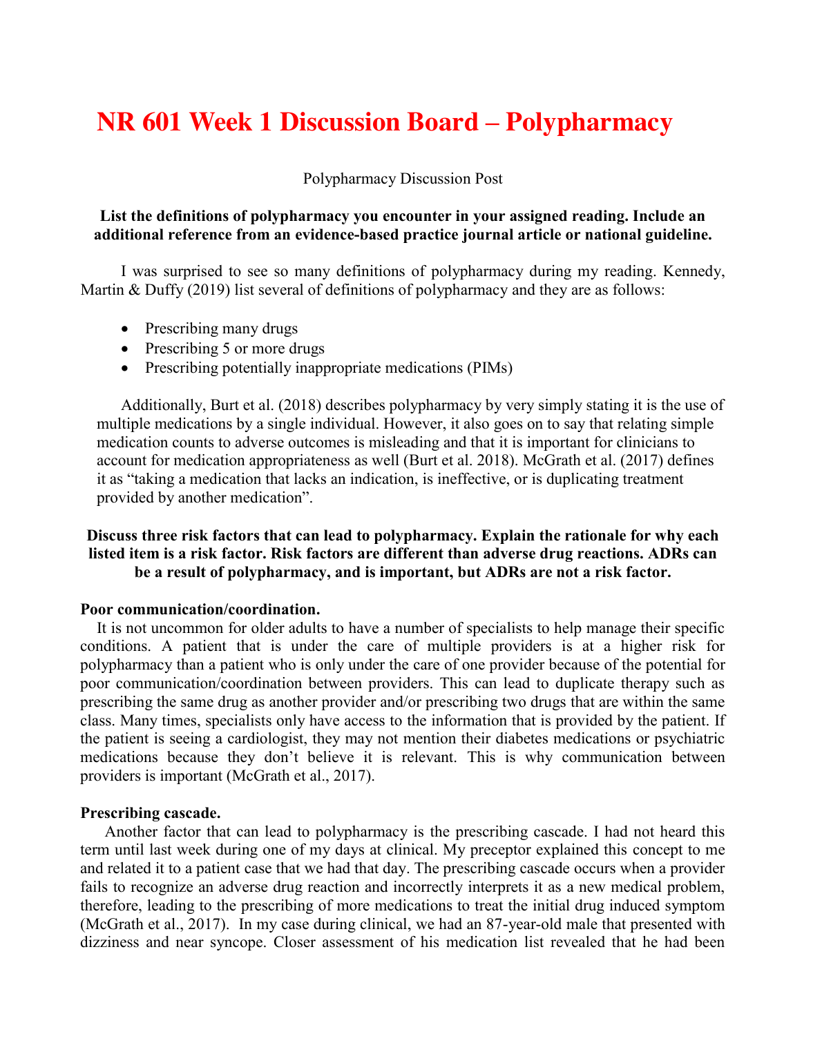 NR 601 Week 1 Discussion Board. Polypharmacy 2023/2024