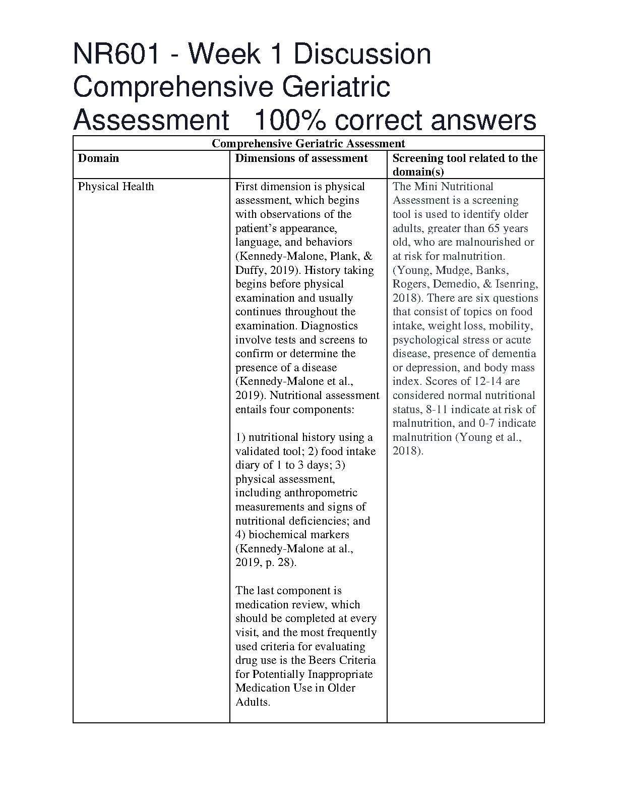 NR601 Week 1 Discussion Comprehensive Geriatric Assessment. GRADED A+