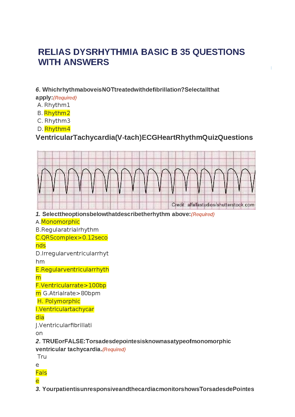 Ace your Relias Dysrhythmia Basic certification with our comprehensive and up-to-date test bank for the 2025-2026 assessment period. This essential study guide features a complete collection of verified questions with detailed, correct answers, mirroring the actual exam format. Gain a deep understanding of critical concepts, including ECG rhythm interpretation, identifying and managing Pulseless Electrical Activity (PEA), and the correct application of life-saving interventions like CPR and defibrillation. Designed to help nursing students and healthcare professionals pass their exam confidently on the first try, this test bank is your key to mastering dysrhythmia and avoiding resits.