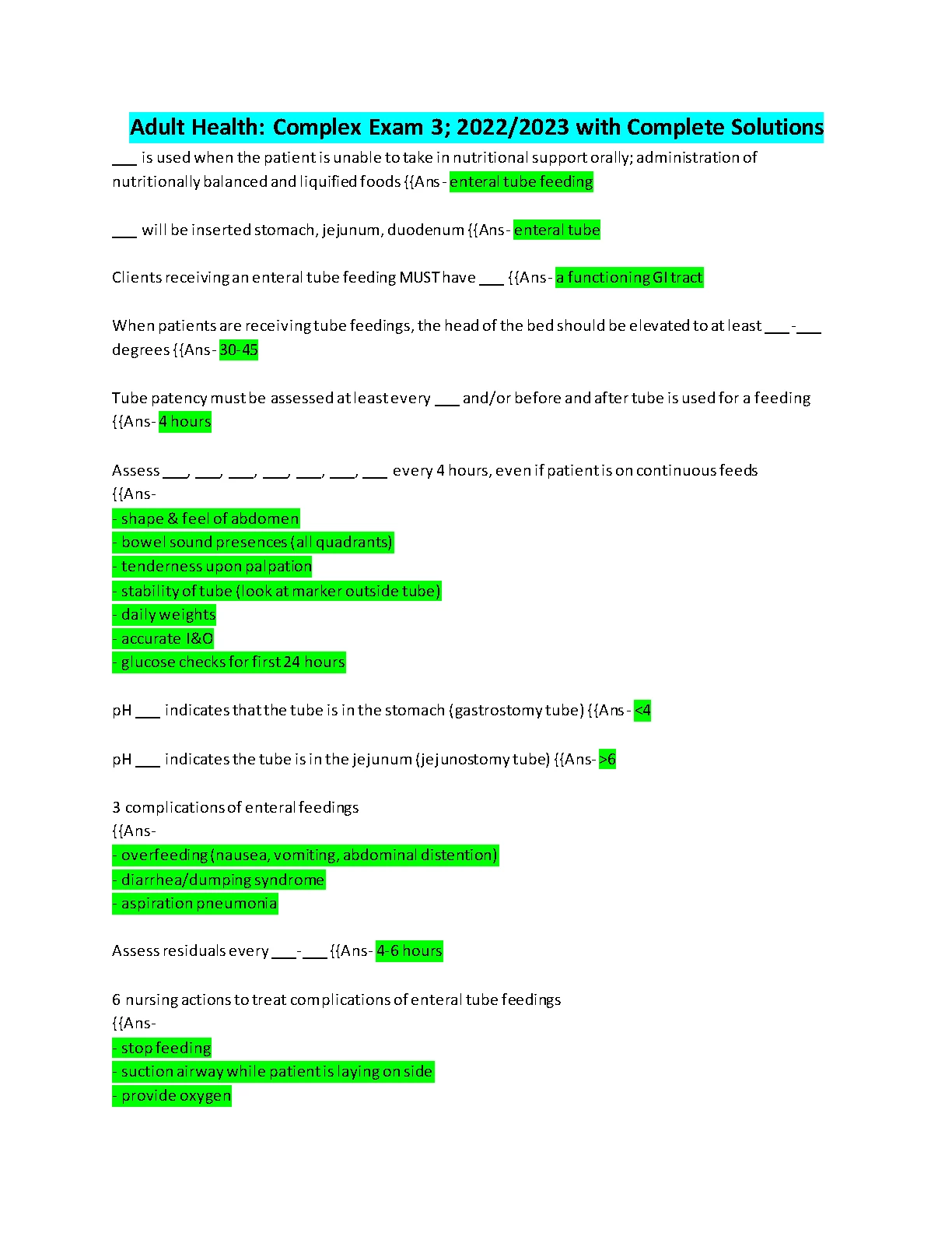 Adult Health: Complex Exam 3; Questions with Complete Solutions 2023. DOWNLOAD INSTANTLY on www.hackedexams.com INSTANTLY