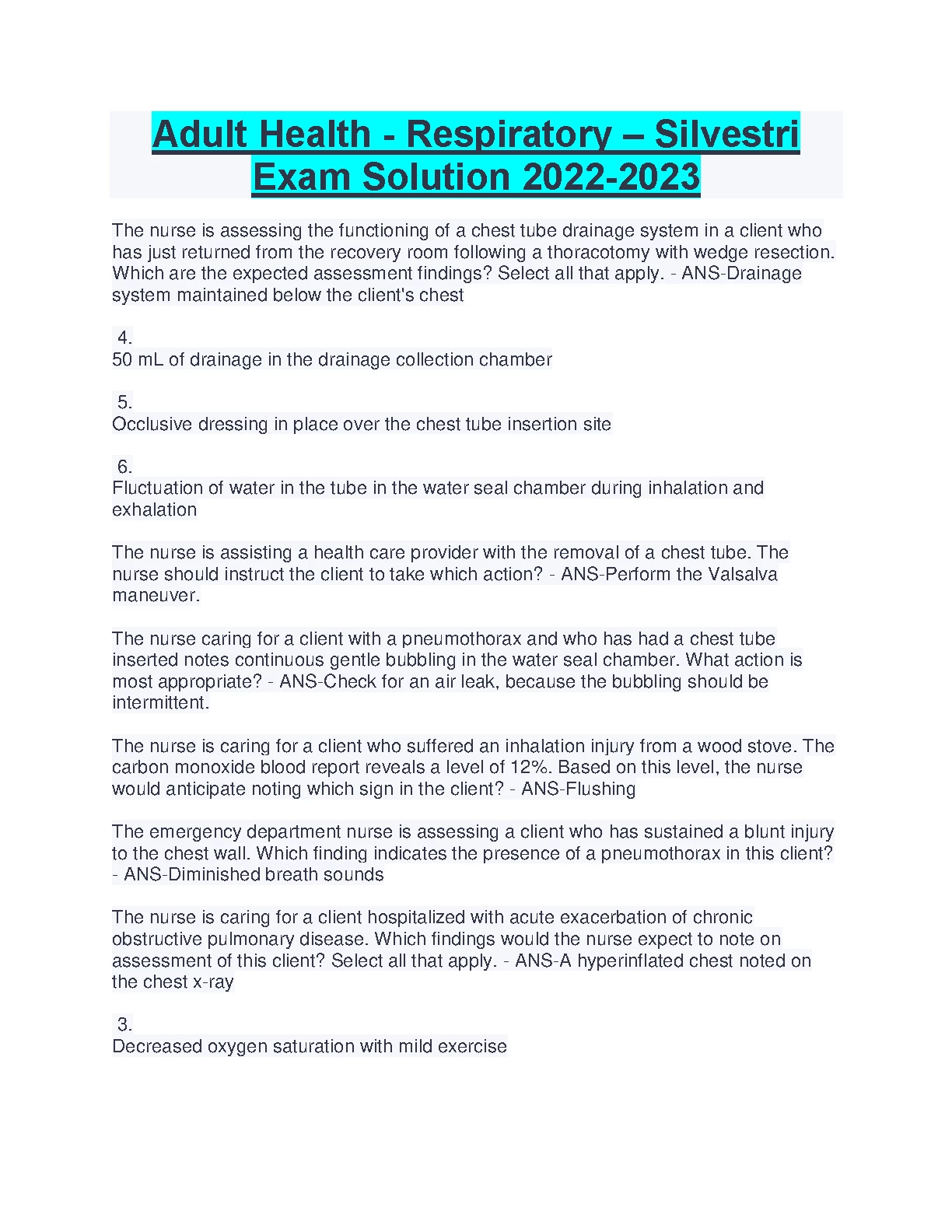 Adult Health Respiratory Silvestri Exam Solution 2022/2023. DOWNLOAD INSTANTLY on www.hackedexams.com INSTANTLY