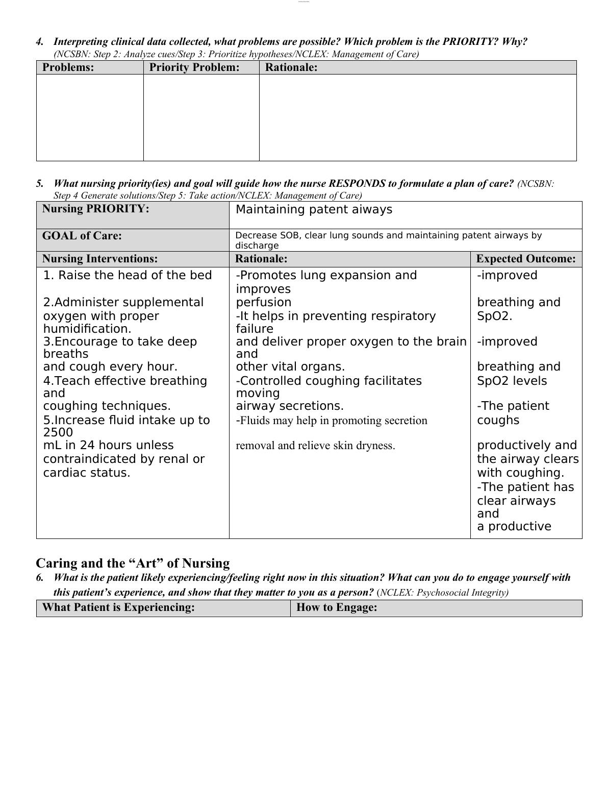 NR 324 ADULT HEALTH Part I: Emergency Department (ED) SKINNY Reasoning John Taylor, 68 years old